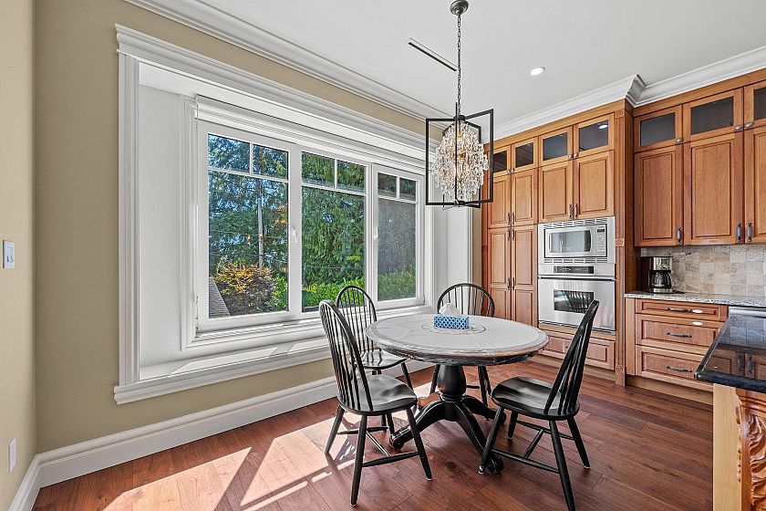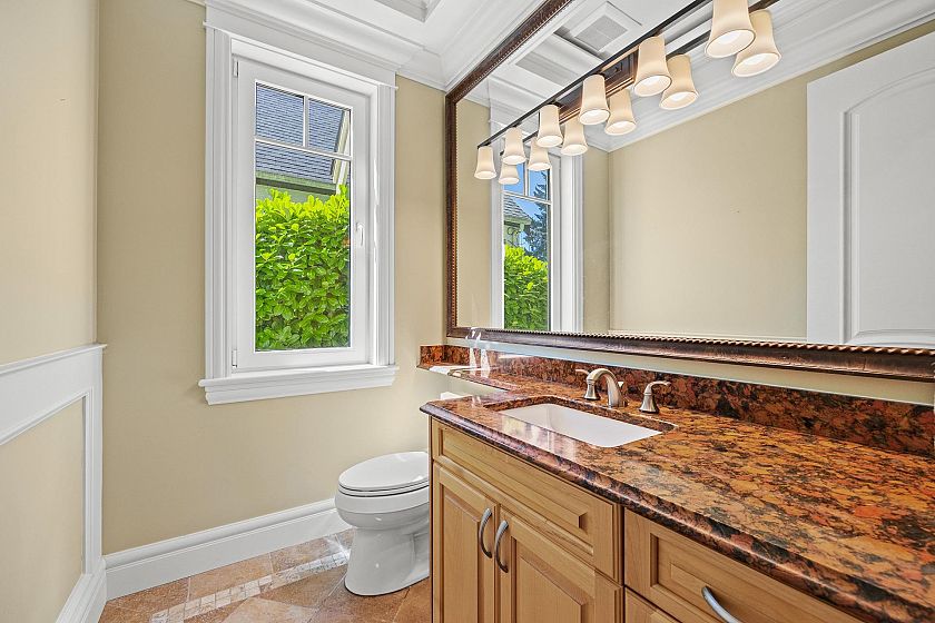 Situated on a 6,500 sqft. lot, this stunning custom-built residence offers over 4,737 sqft. of thoughtfully designed living space. Boasting views of both water and mountains, this south-north facing home is bathed in natural light and showcases premium materials and craftsmanship throughout. The main level features soaring 10-ft ceilings, a grand formal entry, and a functional layout including a office,living and dining rooms, a deluxe Western kitchen, a fully equipped wok kitchen, and a sunny breakfast nook. The spacious family room opens directly onto a beautifully landscaped backyard with a covered patio. Three generously sized ensuite bedrooms up, with vaulted ceilings over 11 feet. The lower level is elevated and nearly above ground, providing excellent natural light and full function