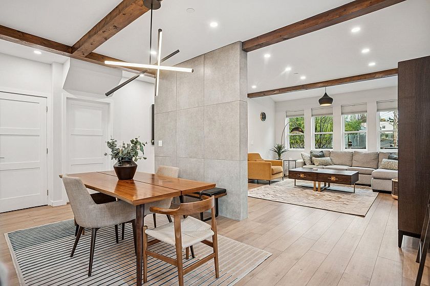 BEAUTIFULLY RE-BUILT w/permits in 2018, this home offers modern living in one of Vancouver’s best pockets. Upstairs are 3BRMS + 2BTHS, w/city skyline views from the primary bedroom. The main floor is perfect for entertaining. It features WOODEN BEAMS and a gas fireplace, adding warmth and character to the open space. The spacious kitchen includes SS appliances, quarts counters + island seating. There’s also a full BATH + laundry on the main. Below is an unfinished space w/separate entrance = EXTRA storage. Outside, the enclosed yard includes a patio + secure parking pad with a sliding gate. Steps from Commercial Drive and the Britannia Community Centre — you'll be hanging out at cafe's, dining at funky restaurants & enjoying community events. OPEN HOUSE, SAT. MAR.14, 12PM-2PM.