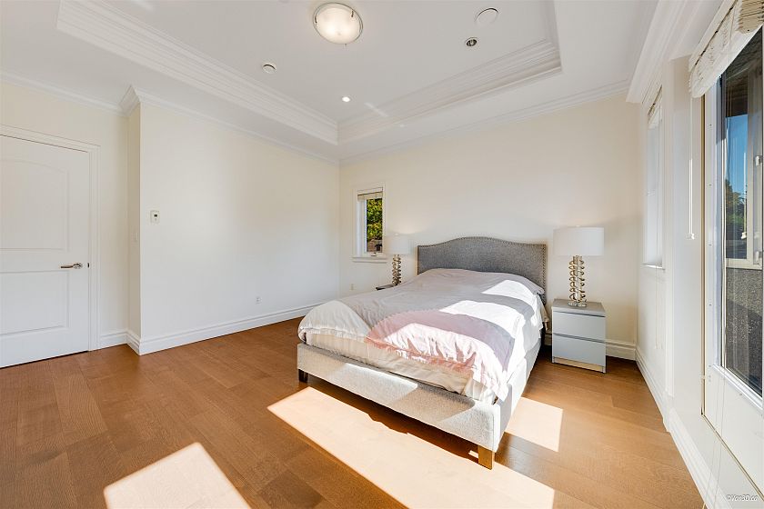 This elegant home sits on the quiet south side of 20 Avenue in prestigious West Dunbar. It is within walking distance to Lord Byng Secondary and Queen Elizabeth Elementary, just a few minutes from St. George’s School and the UBC campus. Thoughtfully designed with fine details, it offers ten foot ceilings, radiant heating, and air conditioning. The upper floor has three ensuite bedrooms, including a luxurious primary suite with a balcony and a large walk in closet. The main level features formal living and dining areas, a bright family room, a stylish kitchen, and a wok kitchen. The lower level includes a theatre and recreation area plus a self contained one bedroom suite that provides great rental income.