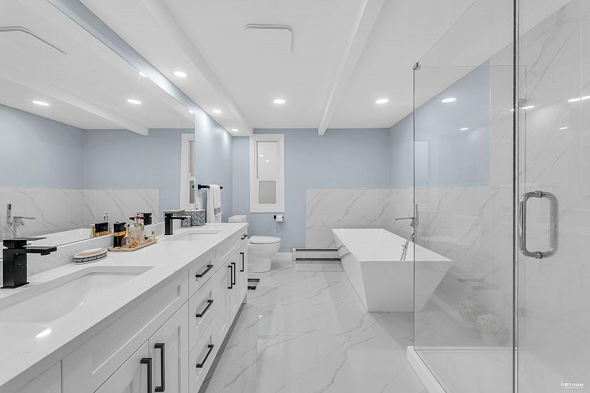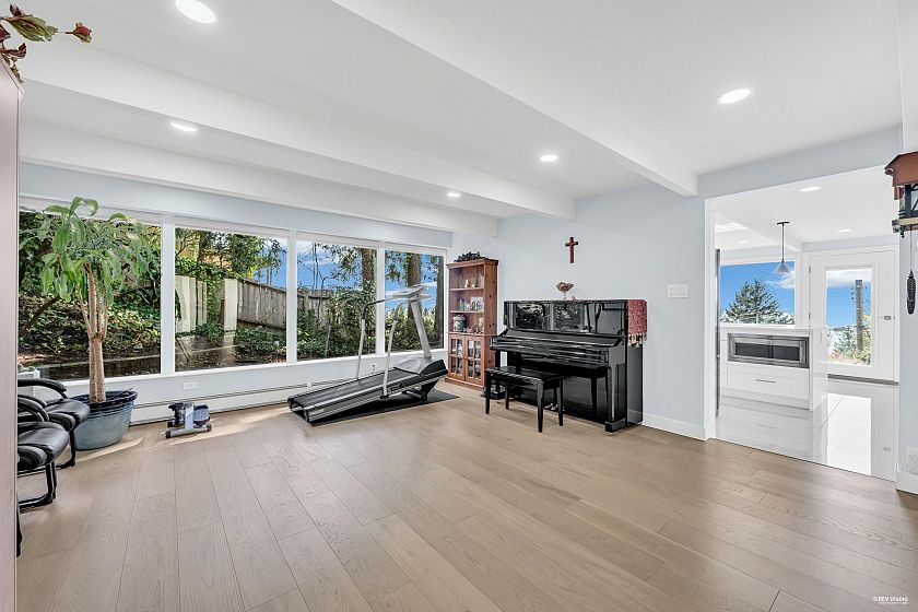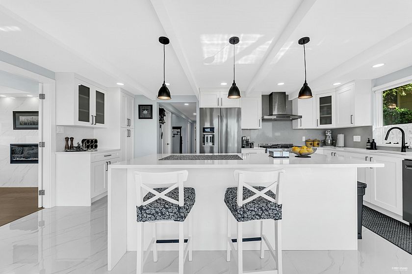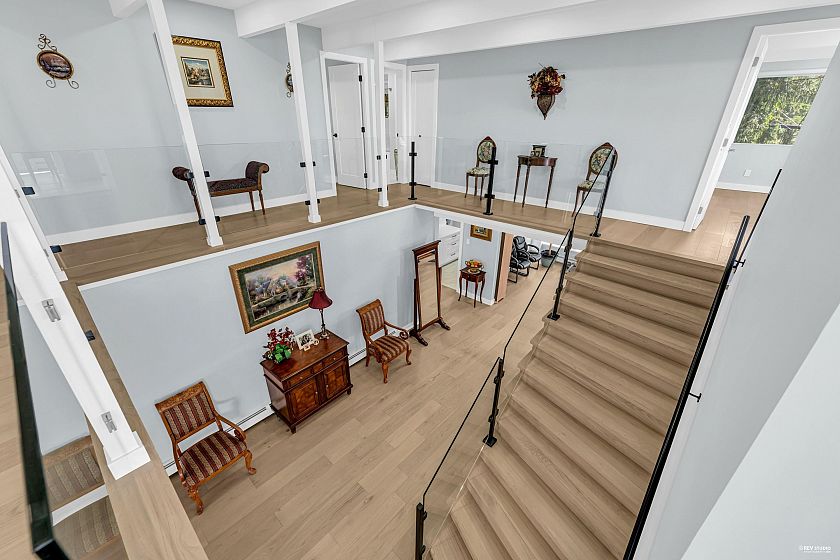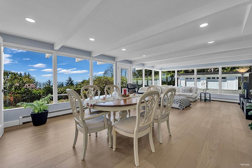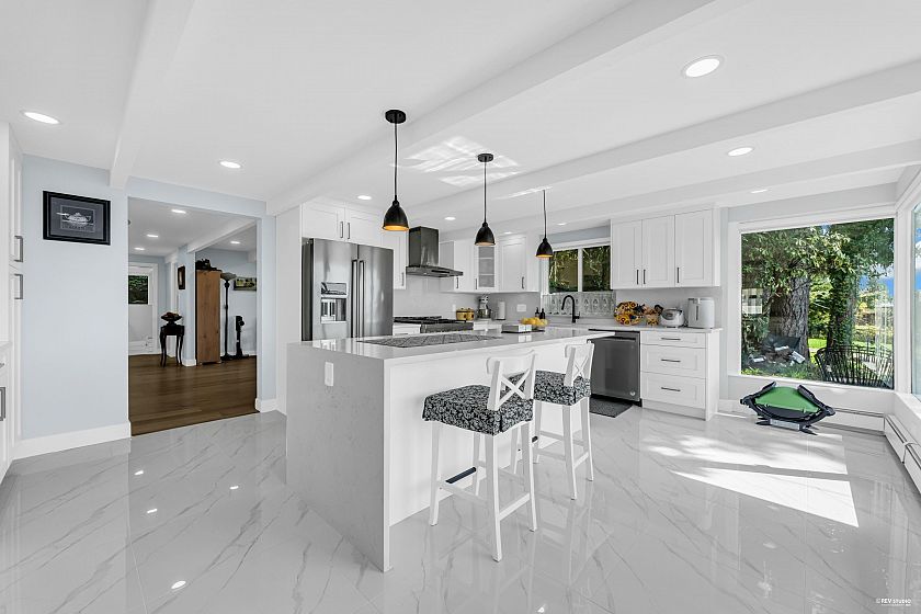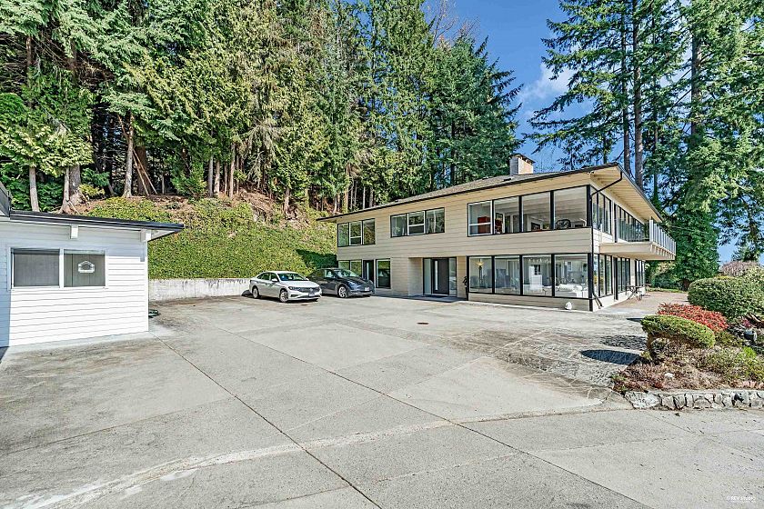 Experience breathtaking panoramic ocean and city views from this private estate, perfectly situated at the end of a quiet cul-de-sac. This completely renovated, custom built Lewis Post & Beam home is designed to maximize natural light with expansive windows on both levels framing unobstructed views. The main level features a grand formal living and dining room, kitchen, spacious recreation room, and executive style office. Upstairs boasts an exceptionally large family room and four well proportioned bedrooms for ideal family living. A private entry space with full kitchen offers potential as a self contained studio, while a fully separate one bedroom suite serves as a valuable mortgage helper. Plenty of parkings. Close to prestigious Collingwood School. Open House: March 1st, Sunday 2-4PM