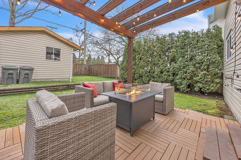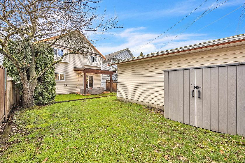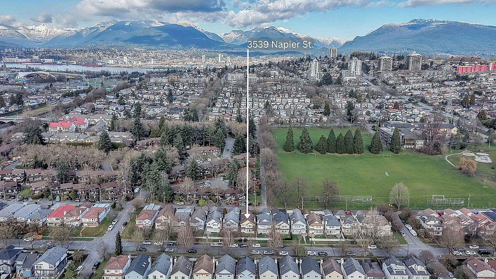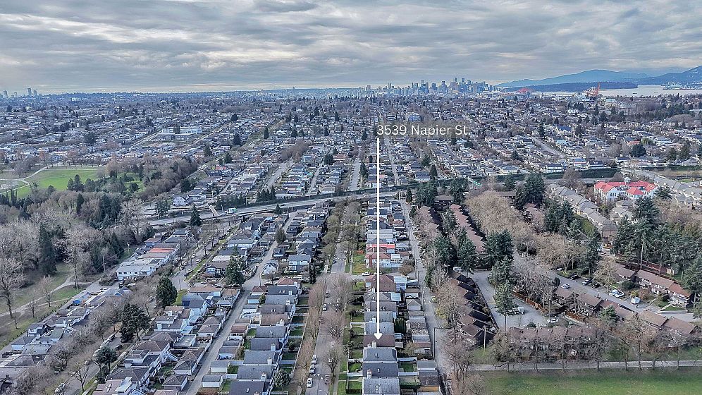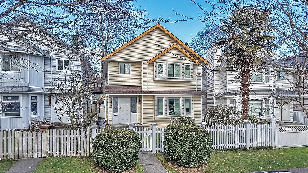 This beautifully updated 5-bed, 2.5-bath family home on a quiet street in sought-after Hastings-Sunrise, backing onto Adanac Park for rare privacy & green outlooks. Fully renovated throughout, this move-in ready home features a gourmet kitchen w/ quartz countertops, SS appliances, & designer mosaic backsplash. Bright main floor offers a spacious living room w/ stone fireplace, elegant dining area with seamless backyard access, plus a versatile bedroom or home office. Upstairs has 4 bedrooms including a generous primary suite w/updated ensuite & custom walk-in closet. Enjoy the sunny fenced backyard w/ pergola patio, mature landscaping, storage shed, & detached garage. Steps to parks, schools, shops, & transit — a perfect turnkey family home. Open Sat/Sun March 14/15th 2-4PM