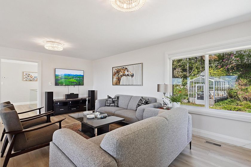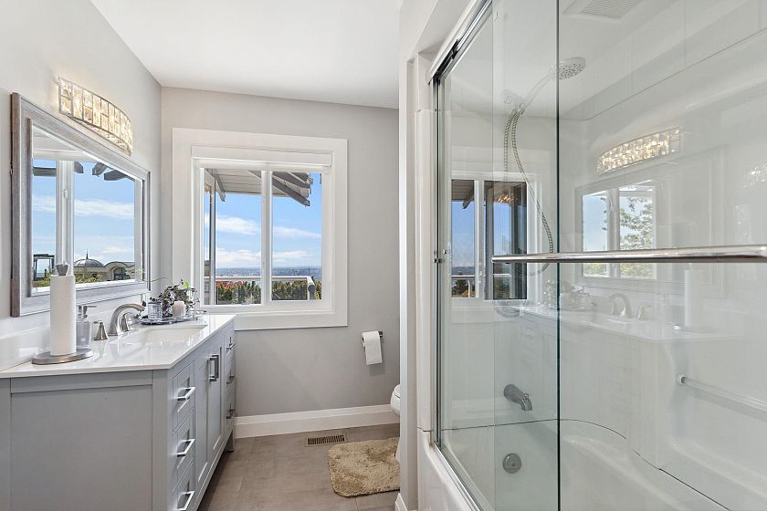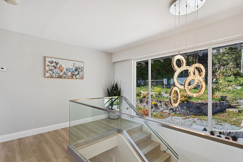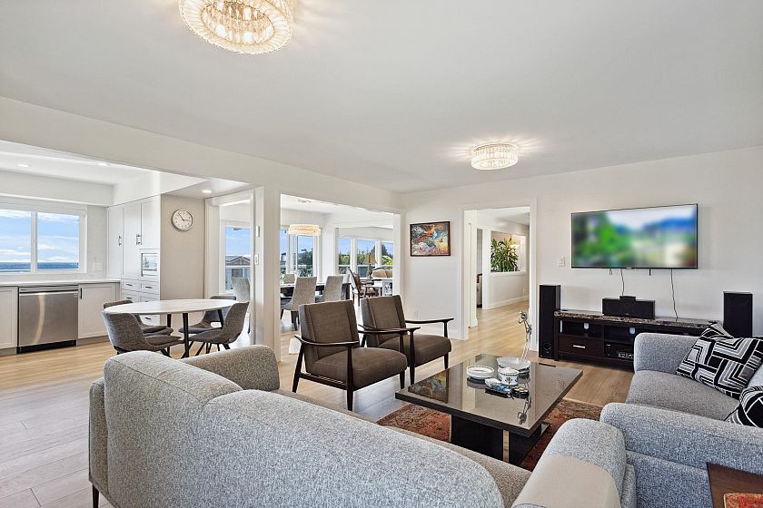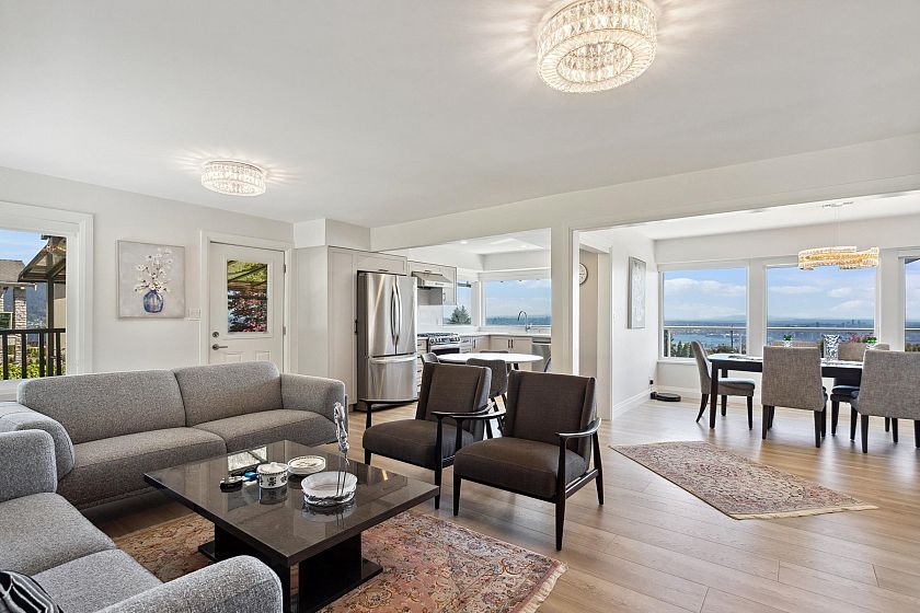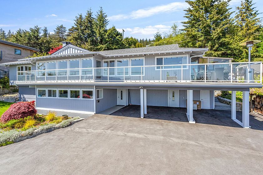 Located in high-end community is a fully renovated home that offers captivating water and city views from every angle, ensuring a daily embrace of nature's beauty. The upper level features three generously sized bedrooms illuminated by sunlight streaming through large windows. The master suite includes a private bathroom. A beautifully landscaped yard provides an ideal setting for dining, relaxation, or hosting gatherings, complemented by an upper deck offering panoramic view of the surroundings. The lower level features a well-planned suite with two bedrooms, a modern kitchen, and a cozy living space. Conveniently situated near ski resorts, golf courses, and shopping hubs, Chartwell elementary and Sentinental secondary schools catchment.