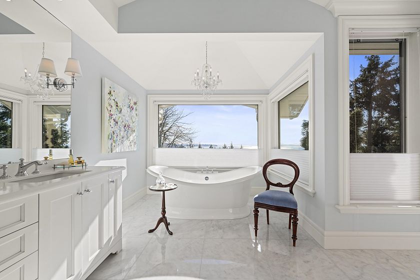 Nestled in the prestigious enclave of Gleneagles in West Vancouver, 6215 Overstone Drive is a STUNNING Cape Cod inspired residence offering nearly 5,500 square feet of refined coastal elegance on an expansive 22,000 sq. ft. estate property. Set against a breathtaking backdrop of ocean views, this classic, traditional home captures the essence of East Coast charm blended seamlessly with West Coast luxury. Impeccably maintained and beautifully finished, the residence feels virtually brand new—presenting as though it were built just 1 YEAR AGO! Designed for both gracious entertaining and comfortable family living, the home offers generous principal rooms, sophisticated detailing, and an effortless indoor-outdoor flow that takes full advantage of the stunning waterfront outlook.