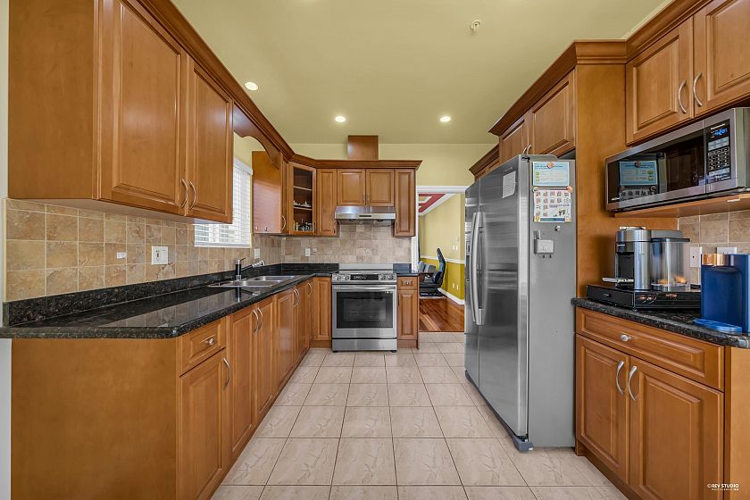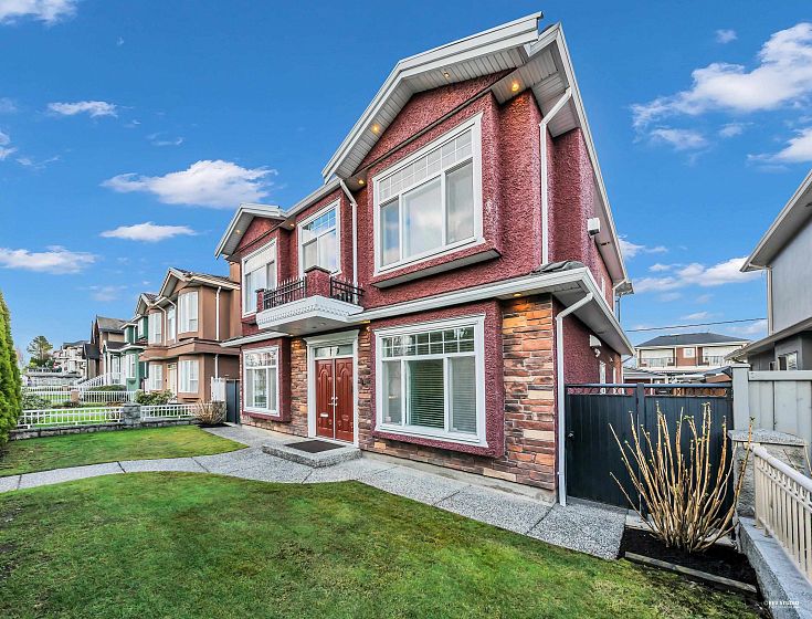 Fraserview Gem with Triple Garage & Massive Income Potential! Rare opportunity to own a meticulously maintained, 8-bedroom residence on a perfectly level lot in the heart of Fraserview. This quality-built home features 9' ceilings on both levels, enhanced by elegant ceiling drops and granite finishes in the entry, fireplace, and all kitchen/bath counters. 2025 Upgrades offer ultimate peace of mind: brand new high-capacity hot water tank, primary laundry, and upgraded double-pane front windows for superior quiet and efficiency. EV-ready with a Level 2 charger already installed! The functional layout includes two spacious 2-bedroom "mortgage helpers," each boasting its own private laundry. Steps to schools, transit, and the vibrant Victoria Drive corridor.—this one won’t last!