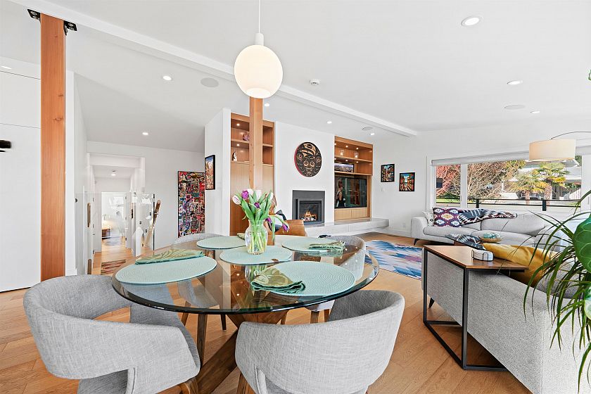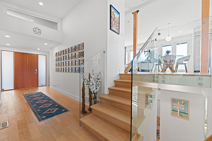 Spectacular West Coast Modern family home awaits in sought after Windsor Park! Beautifully renovated inside and out in 2017, you'll love the attention to detail & quality of materials used. Offering 4 well appointed bedrooms & 3 bathrooms. Open concept gourmet kitchen w/oversized waterfall island, custom cabinets, high-end appliances, including gas stove. Take in water views w/ the impressive covered outdoor balcony, designed w/ skylights, surround sound speakers, BBQ, electric heaters, which allow for year round use! Completing the flat, level backyard is over 2000 sq ft of artificial turf & hot tub, what an amazing space for the family to enjoy! Windsor Secondary & Seymour Heights Elementary catchments. Truly a special home & property! Open Sat & Sun 2-4pm.
