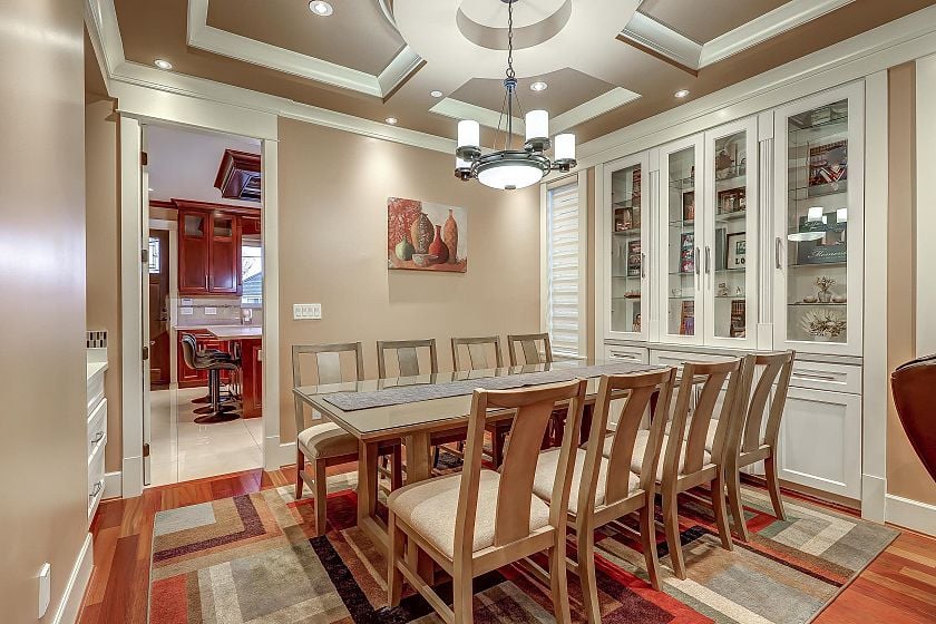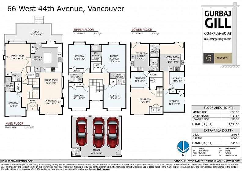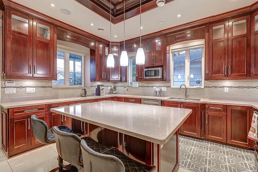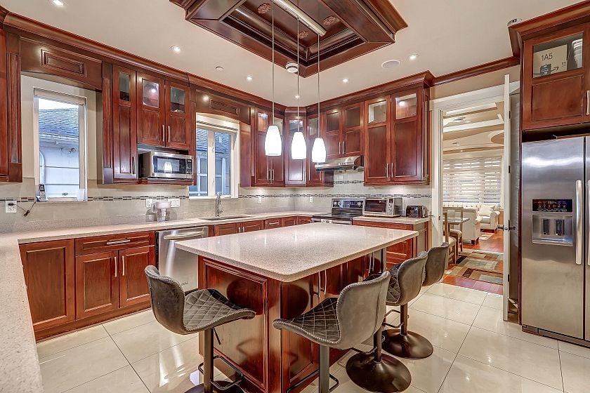 An exceptional custom-built residence in the heart of Oakridge, offering 3,695 sq ft of refined living space on a 41 x 124 lot. Built in 2012, this 8-bedroom, 7-bathroom home showcases quality craftsmanship and a thoughtfully designed three-level layout ideal for multi-generational living. The main floor features elegant principal rooms, a spacious family room, and a well-appointed kitchen designed for both everyday comfort and entertaining, along with a main-floor bedroom. Upstairs offers four generous bedrooms, including a well-appointed primary suite with walk-in closet and ensuite. The lower level features two separate basement areas: one configured as a 1-bedroom suite (with potential for 2 bedrooms), and the second as a 2-bedroom suite, each with its own living room and kitchen area.