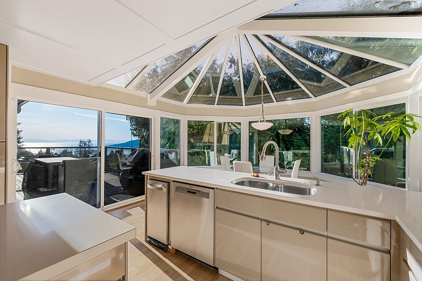 Situated on a quiet cul-de-sac in prestigious Cypress Park Estates, West Vancouver, this extensively renovated 4-bedroom, 3-bathroom home offers nearly 3000 sq ft of thoughtfully designed living space on an impressive 18,732 sq ft lot. Beautifully updated, the home blends timeless architecture with modern comfort-all framed by spectacular SW ocean views to Bowen Island and Vancouver Island. The home features expansive principal rooms filled with natural light and the layout flows seamlessly from the living and dining areas into the spacious gourmet kitchen. The glass solarium/eating area connects the kitchen to the outdoor deck, creating a year-round indoor-outdoor living experience perfectly positioned to capture the incredible ocean and sunset views.