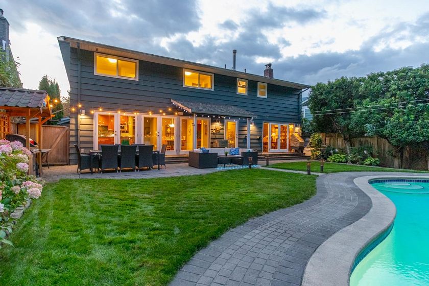 Rare opportunity! Updated home with 5 bedrooms UP and a concrete pool, set on a family-friendly cul-de-sac across from sought-after Ross Road Elementary. Chef-inspired kitchen with premium appliances—6 burner gas range, double ovens, bar fridge, and dual sinks—centered around a large granite island perfect for everyday living and casual gatherings. Backing onto a private greenbelt, the sunny backyard and pool are ideal for relaxing, fitness, and entertaining. Oversized driveway accommodates multiple vehicles, RV or boat, plus a double attached garage with ample storage. Just minutes to Lynn Valley shopping, cafés, transit, & enjoy hiking/biking trails of Lynn Canyon Park. Some photos virtually staged. By appointment.