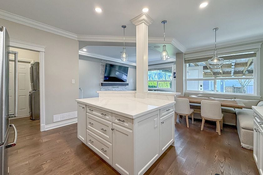 Located in the highly sought-after Boulevard neighbourhood, this beautifully maintained 3,300 sq. ft. executive family home sits on a flat lot with exceptional curb appeal. The current owners have completed numerous tasteful upgrades that rival many newer homes. Bright living spaces feature a cozy gas fireplace and engineered hardwood flooring throughout. The modern, open kitchen flows seamlessly into the family room with level access to a spacious deck and private, manicured backyard. Ideal layout with four generous bedrooms up, including a well-appointed primary retreat. The fully finished lower level offers a large recreation room with a bar, potential for two additional bedrooms, plus a self-contained one-bedroom suite. Steps to parks, schools, and recreation. Open Wed March 4th 10-12