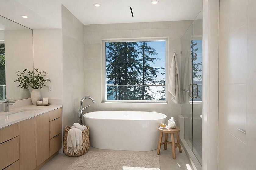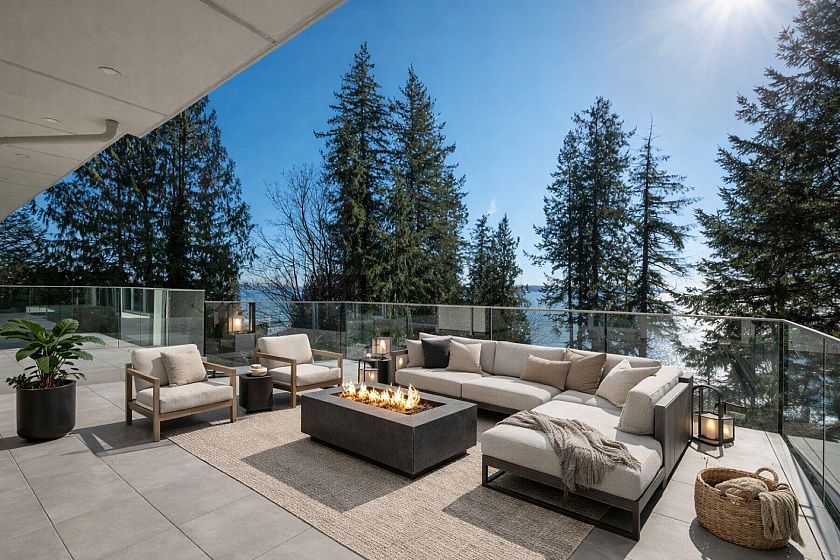 Spectacular Brand New Contemporary Gem designed by Vesna Molby situated on a sun drenched 14100 sq/ft lot directly across from the sandy Caulfeild Beach! Offering over 5700 sq/ft of open living spaces, this stunning home will take your breath away from the moment you arrive. Floor to ceiling glass throughout and expansive sun filled rooms offering gorgeous natural light, and an indoor outdoor living experience that is magical. The huge south side patios can be enjoyed throughout the year with the sounds of the ocean and natural surroundings encompassing the entire property. 4 beds up complete with ensuites, private patios and close in water views. The impressive chefs kitchen is a treasure! Lower offers garden walkout, bar, media room and guest suite. West Coast Living at its best!