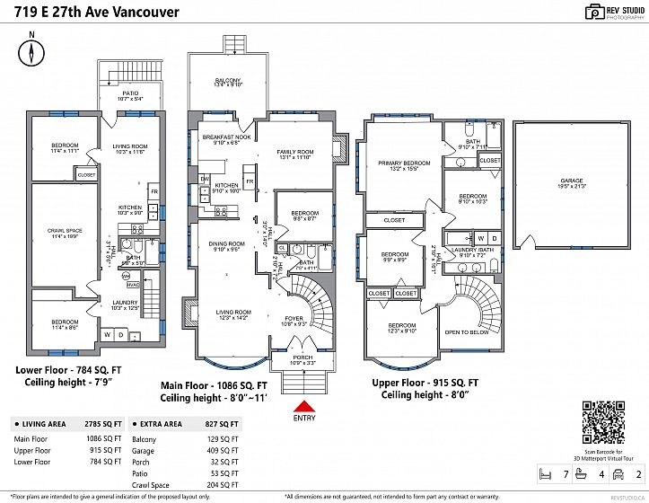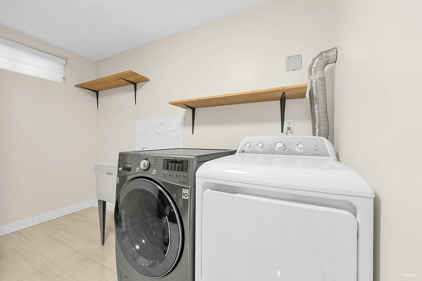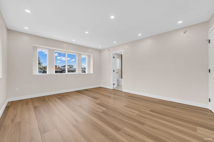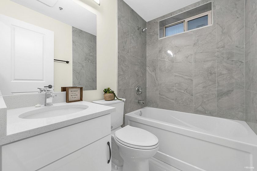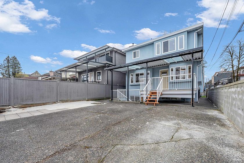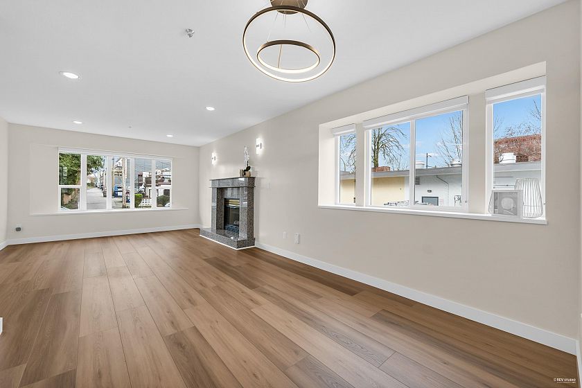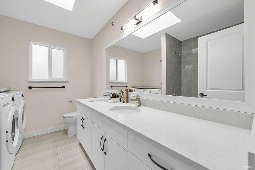 Fully renovated 3 level, 2,789 sqft Vancouver Special on a 33 x 132.3 lot with 7 beds, 4 baths, Updates include new flooring, bathrooms, kitchen with quartz countertops, vinyl windows, doors, blinds, lighting, appliances, and fresh paint. The upper level has 4 bedrooms, including a primary suite with ensuite, plus a bath with an XL countertop and side-by-side washer/dryer. The main level features open living/dining, a bedroom/office, and a full bath. Below is a 2-bed suite with a separate entry, full kitchen, and laundry. Radiant floor heating throughout the home. Located on a quiet, tree-lined street near schools, shopping & transit. Double garage, extra parking & a maintenance-free backyard with a deck & new aluminum awning. Open House Mar. 14 Saturday 3:30-4:30pm