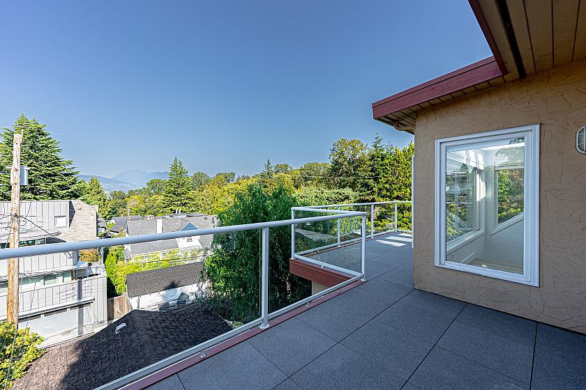 Point Grey, 4 bdrm, 3 bath home on 5200 sf property features meticulously maintained family home boasting over 3100 sf of traditional floorplan inside, 550 sf of serene mountain & ocean view decks to the north & sunny manicured front yard. Spacious principle rooms on main level w/access to view deck from eat-in kitchen, bedroom & dining room. Upper level is a sunny master suite w/spa like bath, dressing room & deck with breathtaking north views. Fully finished basement with 2 bdrm suite, laundry & workshop . The backyard features covered patio, stunning bloom gardens w/water stream, greenhouse & detached 2 car garage w/laneway access. basement reno in 2024, new flooring on masterbdrm,new fence in 2025. Located in best school district, minutes to UBC & only steps to Spanish Banks beach.