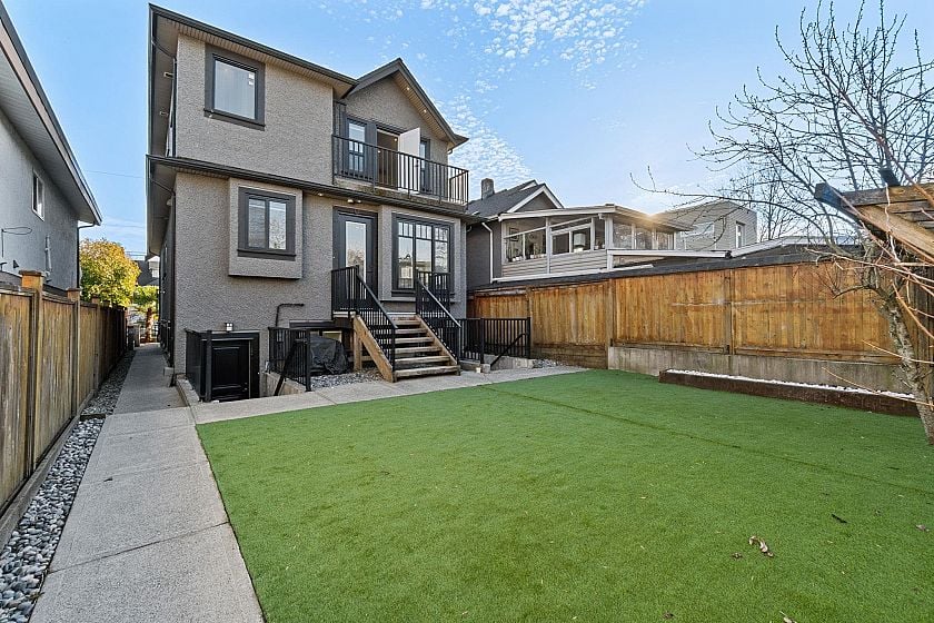 Recently updated throughout, this exceptional south-facing home in Fraser East offers nearly 3,600 sq. ft. of covered living space on an extra-deep 33 x 135 ft lot. Built in 2014, the main home features 4 bedrooms upstairs, bright living areas, and quality finishes throughout. The lower level includes two mortgage-helper suites (2-bed/1-bath and 1-bed/1-bath). A fully detached 2-bed/1-bath laneway home (2015) adds excellent rental or extended family options. Includes garage plus extra parking, and is ideally located near parks, schools, and transit in Vancouver. All measurements approximate; buyer to verify. OPEN HOUSE: March 14th & 15th, 2-4PM