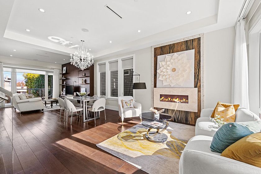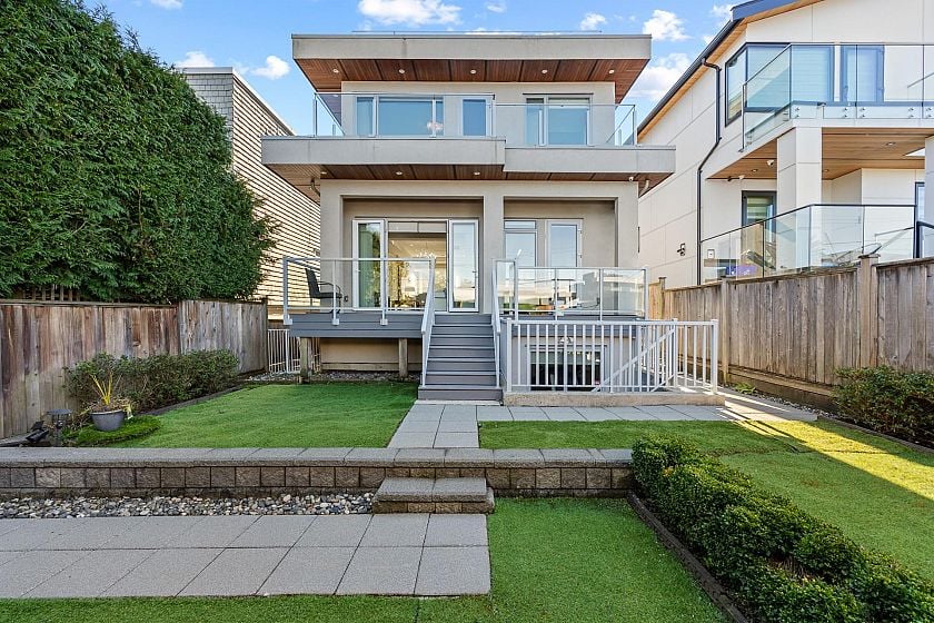 Stunning modern home in the prestigious Dunbar area offering spectacular city, mountain and Ocean views from the upper level and rooftop deck. This beautifully designed residence features a bright open layout with high ceilings, large windows and quality hardwood flooring throughout. The gourmet kitchen is equipped with premium appliances and a spacious island, perfect for entertaining. Enjoy a luxurious primary ensuite with freestanding tub, glass shower and elegant finishes. The lower level offers a large recreation area with wet bar, ideal for family gatherings and entertaining. Beautifully landscaped backyard and a detached double garage. Steps to parks, top schools, shopping and transit. A rare opportunity to own a modern home in one of Vancouver West’s most desirable neighbourhoods.