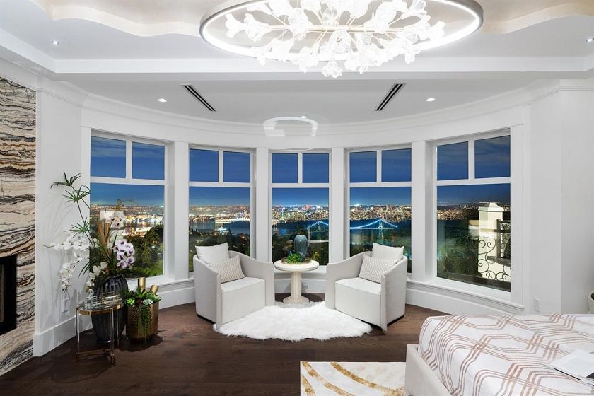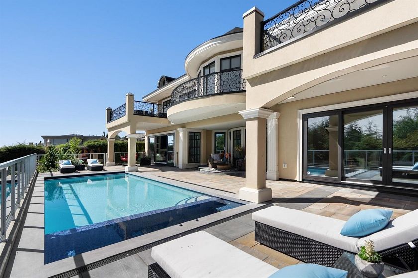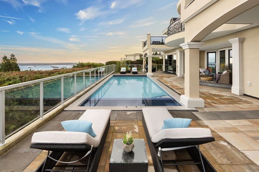Panoramic VIEWS OF WATER, CITY, STANLEY PARK, LIONS GATE BRIDGE, UBC. A truly impressive like new residence designed by "David Christopher", custom build "Home by Valentino" in prestigious Chartwell. Luxury 10118 sf home on 16270 sf lot. Grand Foyer with 20ft hand painted dome ceiling above splendid Schonbeck crystal chandelier. Onyx look Italian tile on main/basement, hardwood on upper. Italian cabinets from BFJ. Top of line Miele and Wolf appliances, European gourmet & WOK kitchens, elegant pearl diamond design in Kitchen cabinet. 4 marble gas fireplaces .It offering 6 bedroom 8 bath, all en-suite with balconies. Two sets of Laundry. Fascinate wine bar/wine cellar, theatre, Steam shower, Sauna, Gym, pool/hot tub. 3 car, heated drive way. Flawless Home!