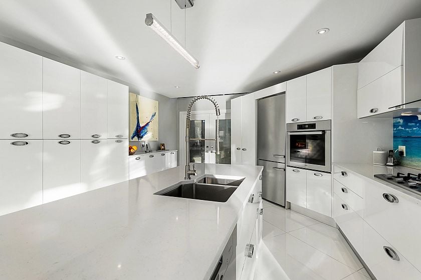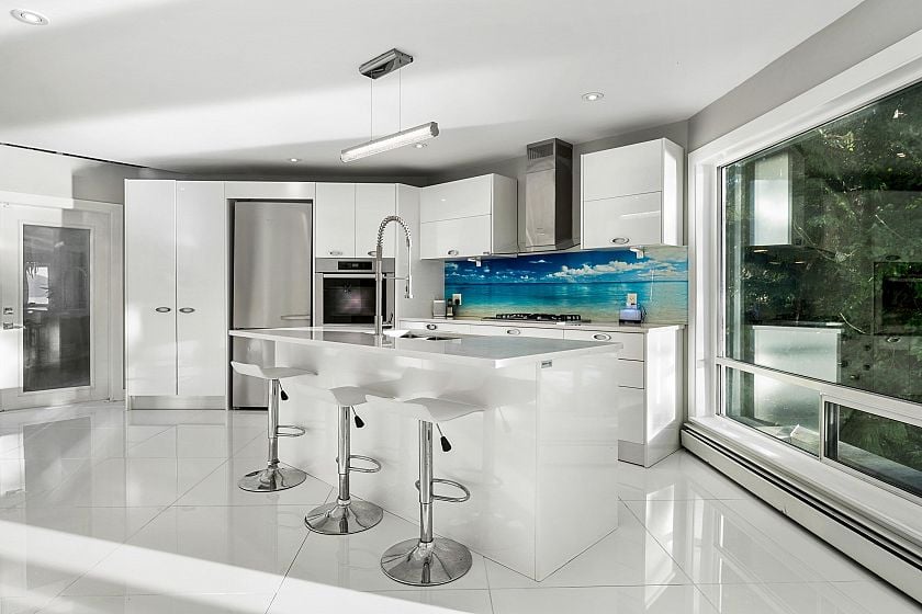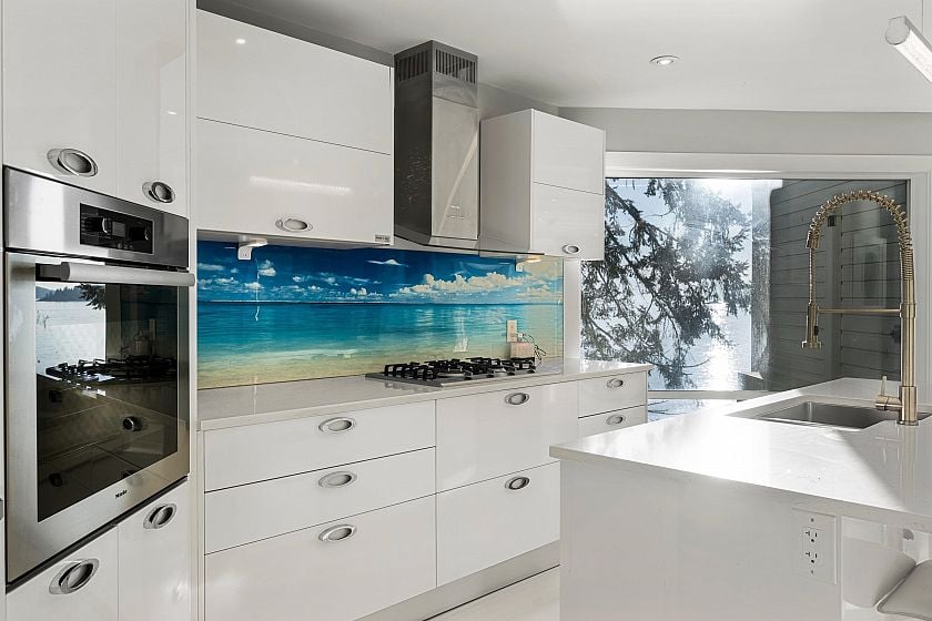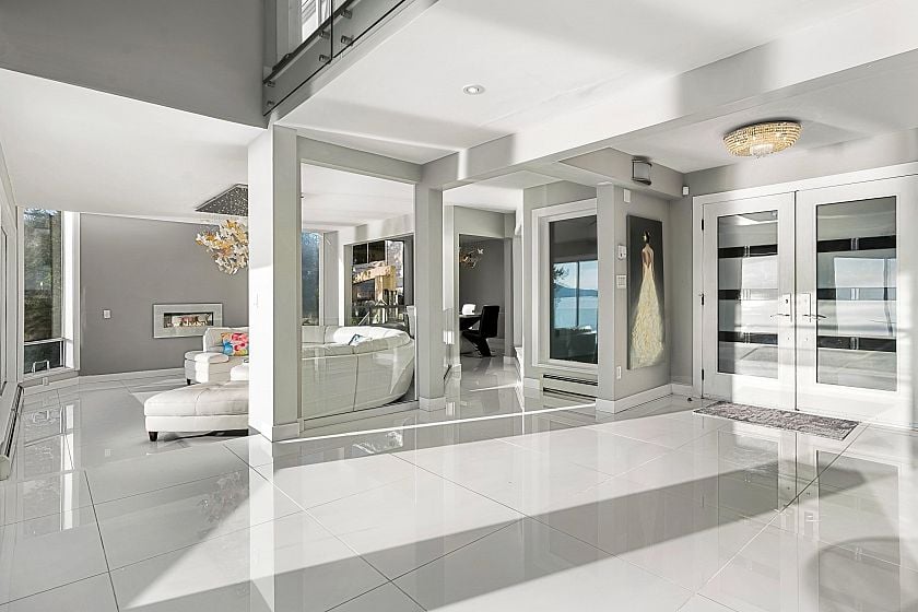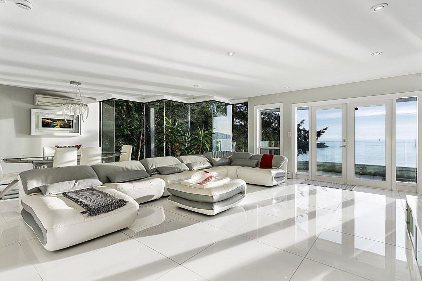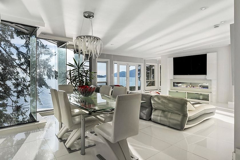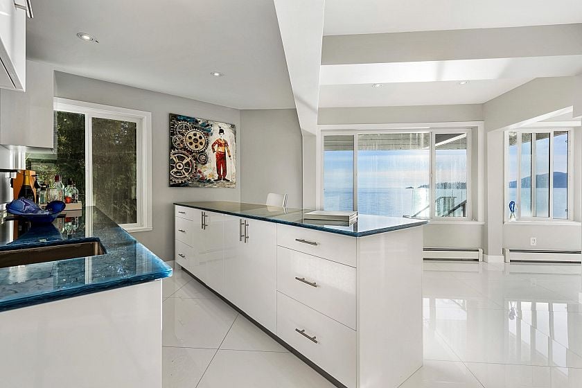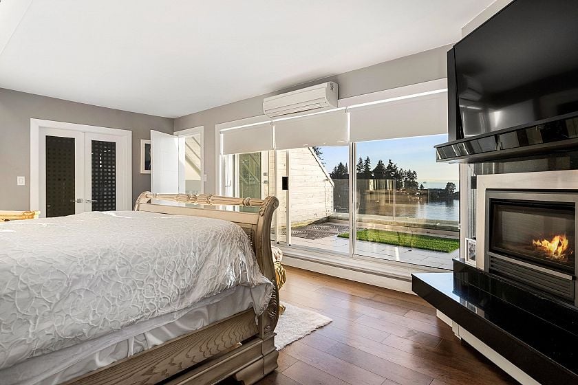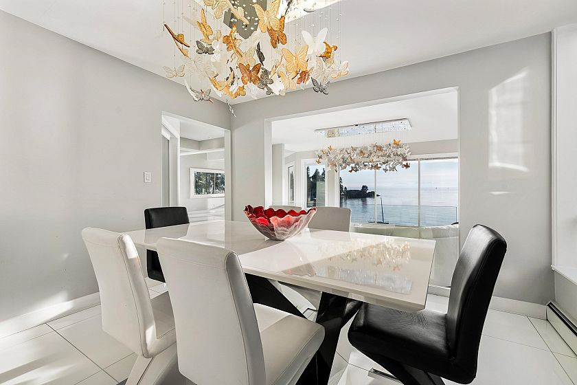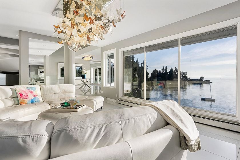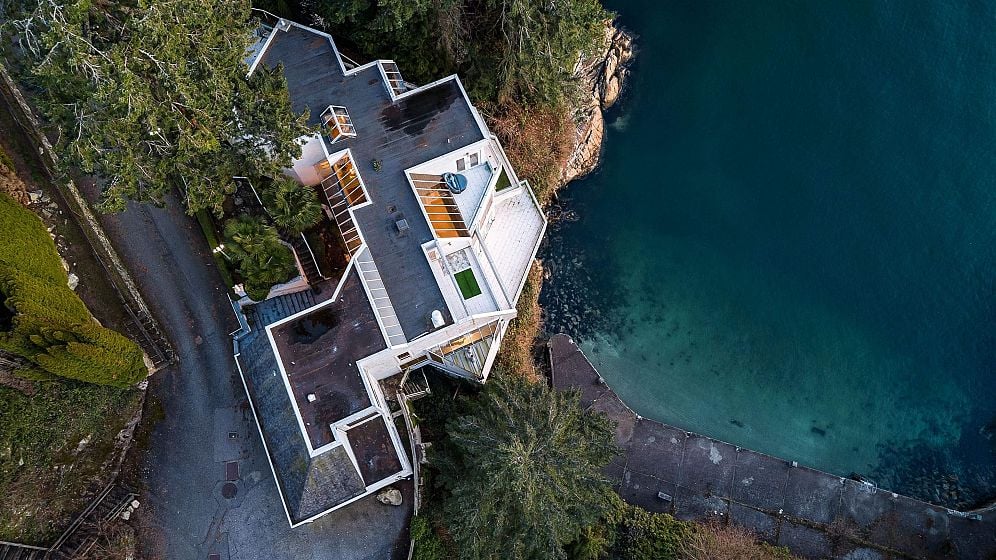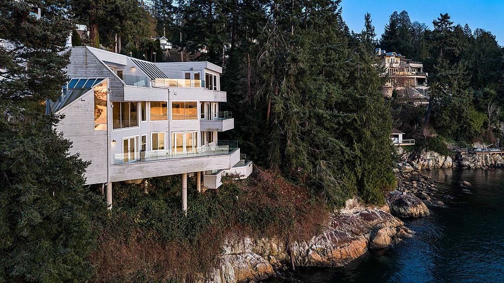 Spectacular waterfront architectural estate by Christopher Bozyk overlooking Balmy Beach. Situated on a private 16,500 sq. ft. lot at the end of a quiet cul-de-sac, this 5,600 sq. ft., 5-bedroom home captures breathtaking southwest ocean views of Passage Island, Bowen Island, and Vancouver Island. Designed to maximize natural light with soaring ceilings, walls of glass, and expansive decks for seamless indoor-outdoor living. Features include a gourmet kitchen with high-end appliances, a stunning great room, and three en-suited bedrooms upstairs, including a step-up primary suite with a private deck. The lower level offers two additional bedrooms, a bar, and rec room opening to oceanside terraces. Complete with lush landscaping, a 3-car garage, and access to exclusive Parthenon Park.