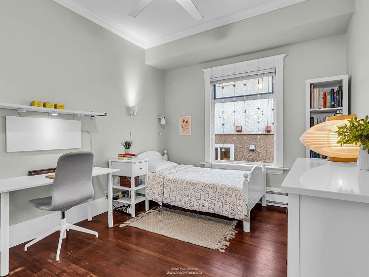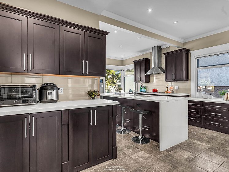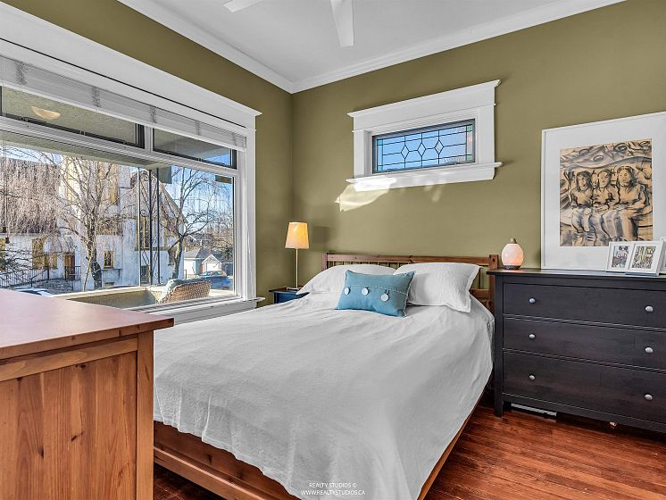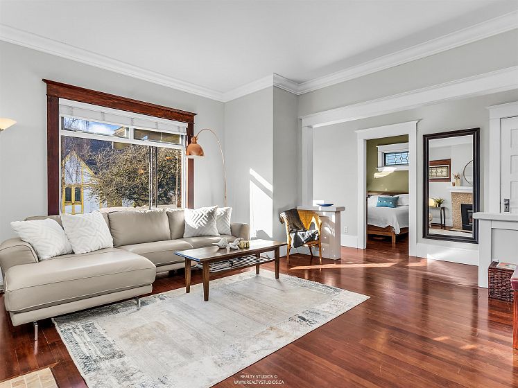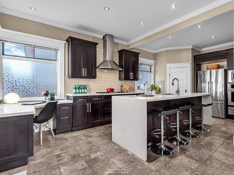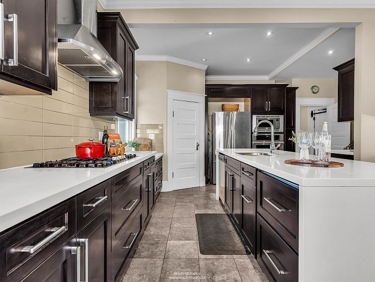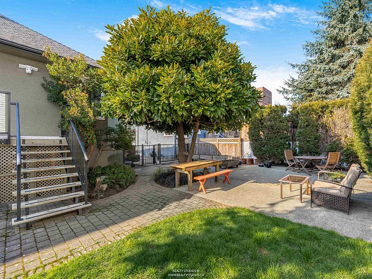 Prime Cambie area home on a rare 53x100 ft wide lot offering excellent space and flexibility. The main floor features 3 bedrooms, 9.5-ft ceilings, fir floors, crown mouldings, and a gas fireplace. Renovated kitchen with large peninsula island, five-burner gas cooktop, wall oven, walk-in pantry, heated tile floors, and custom desk. Upper loft provides flexible space for a home office, play area, or lounge. Garden level offers a three-bedroom suite with its own laundry, ideal for extended family or income potential. Extensively updated between 2004–2007 with newer wiring, plumbing, roof, chimneys, insulation, windows, and doors. Hot water heat with boiler replaced in 2015. Attached single garage plus off-street parking.