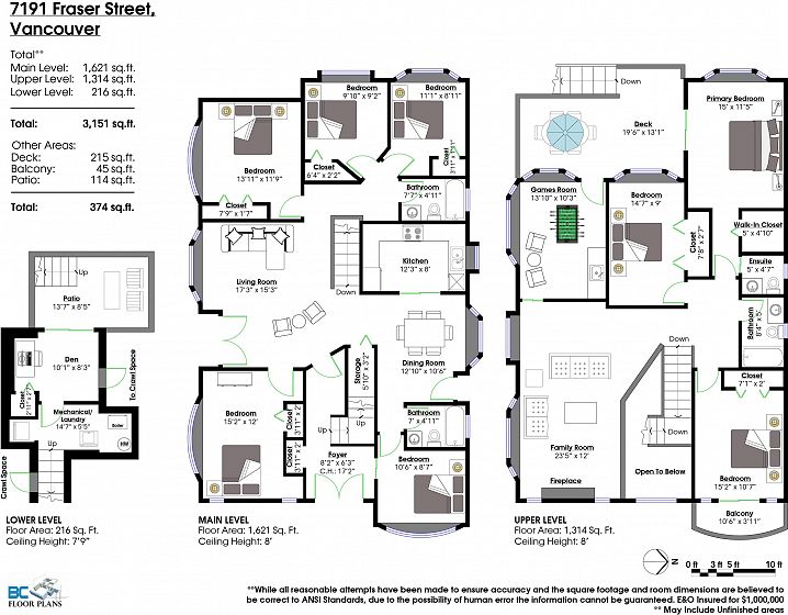 Welcome to this large 3151 sq.ft. home on a 5,211 sq.ft. corner lot with lane access (RT-2 Zoning) and a detached 2 car garage. Built in 1994 with 8 bedrooms and 4 baths! On the main floor (1621 sq ft) you'll find a total of 5 bedrooms and 2 full bathrooms, kitchen, dining and living room. Above main floor, (1314 sq ft) will consist of 3 bedrooms, 1 full bath and a 2 piece ensuite with walk-in closet in the Primary Bedroom. Also above, a games room with wet bar which walks out to a spacious deck/partial views & super sized family room with gas fireplace. Lots of windows throughout the home for natural light. Huge potential with some updating for investment and/or the larger family! Great location close to transit, schools, parks, shopping and restaurants.