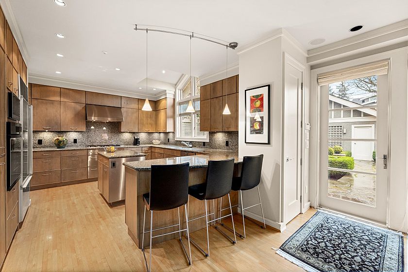 Beautifully crafted, custom built Craftsman-style home in a prime Westside location offering elegant interiors and exceptional outdoor living. Thoughtfully designed with generous principal rooms, the main level features h/w floors, high ceilings, lrg windows, a bright home office and an open kitchen/family rm with seamless connection to the rear garden and patios. Upstairs there are 3 well-proportioned bdrms including a spacious primary suite with city and mountain views. The lower level w/ sep entrance includes a large rec-room, fourth bedroom, laundry and storage.The beautifully landscaped south facing garden is designed for effortless outdoor living with stone patios, manicured hedging, and mature trees. A double garage with lane access completes this exceptional property.