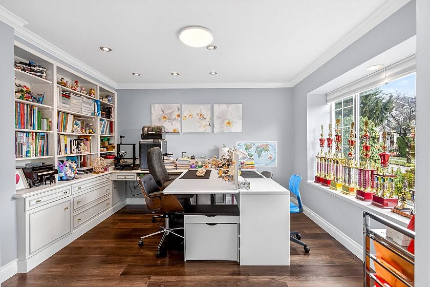 Meticulously maintained 3,450+ sq.ft. family home on the high side of a quiet street in prestigious South Granville. Featuring 6 beds & 5 baths, this elegant residence offers an exceptional, functional layout ideal for modern living. A grand double-height foyer with spiral staircase and skylights creates an airy, light-filled first impression. The upgraded gourmet kitchen (2018) features Wolf, Dacor & Bosch appliances and flows seamlessly into the dining and family areas—perfect for entertaining. Includes A/C, spa-inspired primary ensuite with steam bath, rare 3-car garage, plus a 2-bed suite with separate entry & full bath. Dr. R.E. McKechnie & Magee catchment. Exceptional value—don’t miss this opportunity. Openhouse: 4/11 2:00-4:00 PM