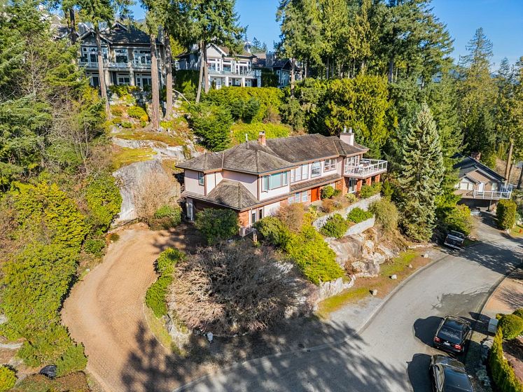 Perched on a rock bluff in the heart of Caulfeild, situated at the end of a quiet cul-de-sac, this residence sits on a sprawling 11,744 sq/ft lot with 2,749 sq/ft over 2 levels. A thoughtful layout featuring 3 generous bedrooms, 3 full bathrooms and vaulted ceilings brings a sense of space and light to the main living and dining area. South-facing decks and a private rear patio offer a seamless transition to the outdoors. The above-ground, walk-out lower level provides a bright, airy secondary living space that feels worlds away from a traditional basement. Minutes away from Caulfeild Village Shopping Centre. School catchments: Caulfeild Elementary, Rockridge Secondary.