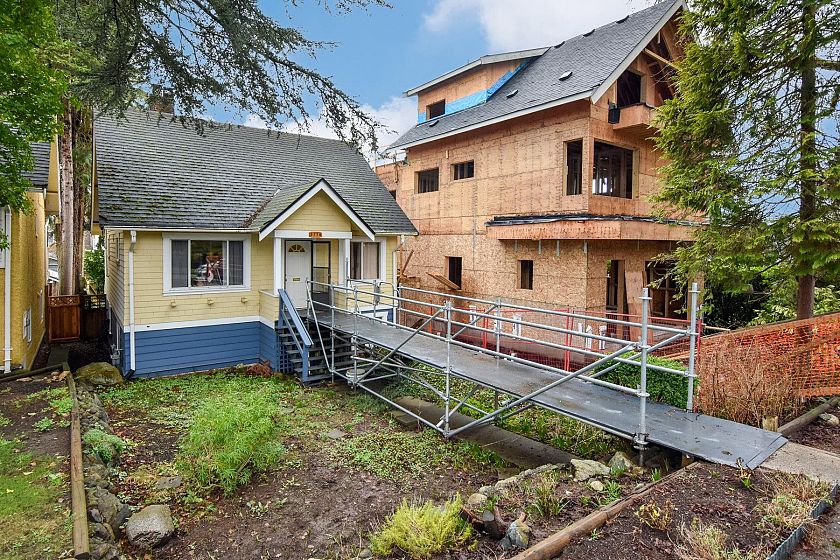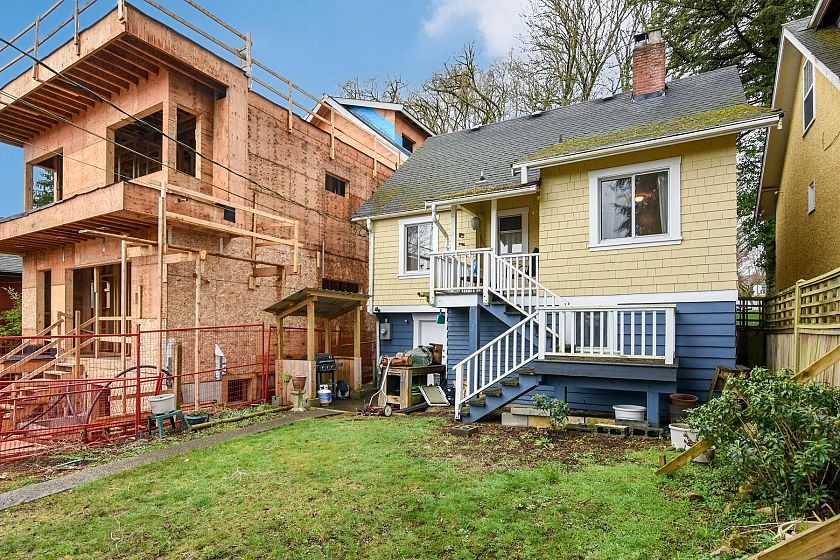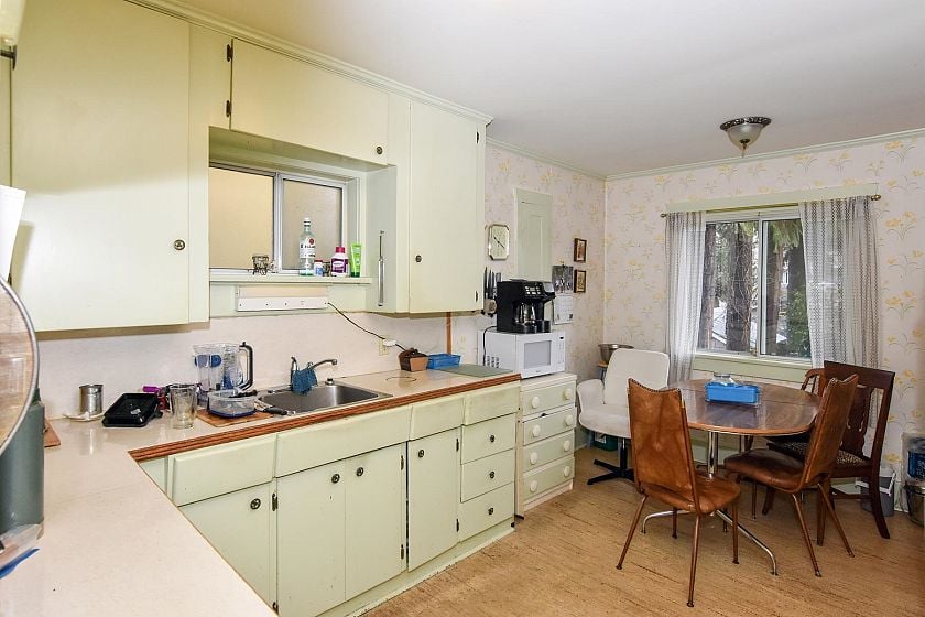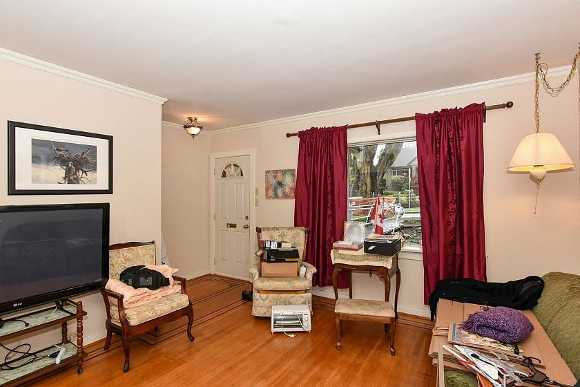 Prime Dunbar 33 ' x 130' mostly level R1-1 building lot w/lane on south side of curbed street flanked by mature trees 1 block to shopping, St Georges School, minutes to Memorial Park/Community Centre, Pacific Spirit Regional Park. Older 3 level home mostly original condition, well maintained by same owner since 1963, H/W floor in lvgrm, 1 mn flr bdrm has no closet or door hung on frame, kitch w/eating area, mn flr 3 pc bath w/walk-in shower, 2 attic bdrms, partially finished bsmt w/bdrm, famrm, utility room. Updated 200 amp electrical panel & some wiring + original wiring, gas furnace & h/w tank newer. Single carport was enclosed & used as workshop. Estate sale, sold ' As is, Where is'. Recent oil tank scan found no tank. Elevated walkway & scaffolding excluded from sale & will be removed.