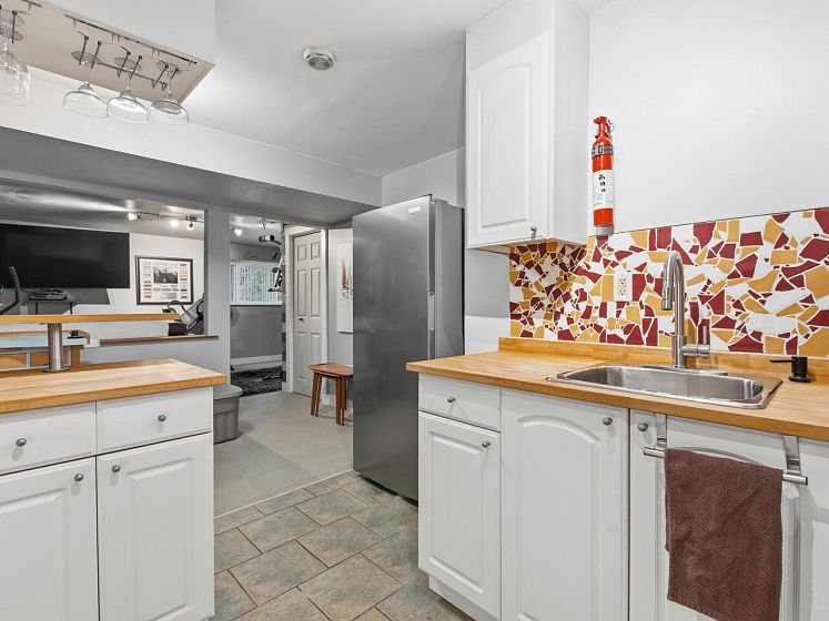 Easy North Shore living in this lovely 3 bedroom, and not so common 3 full bath family home, located across the street from the Larson park trails. Second bedroom/office/flex space opens to a backyard entertaining area. It's fully finished downstairs with a kitchen, livingroom, bedroom and full bathroom. Easily suitable as it has been in the past. Many upgrades and updates have been completed over the years. Two wood-burning fireplaces complete the winter coziness.This ideal 6,750 sq. ft. lot with lane access is in the newly designated GO"ground orientated" zoning and offers the opportunity to build up to 4 units pending City approval, an ideal investment to hold while planningfuture development. close to schools, shopping (Westview), The Mosquito Creektrails, and recreation.