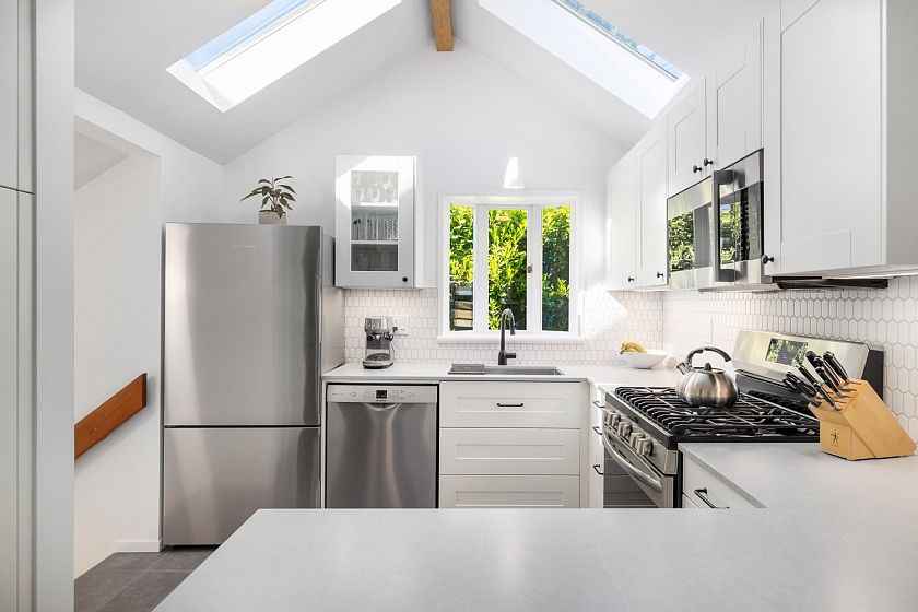 A peaceful family oasis—do not be fooled by the address. This charming and beautifully updated 3-bedroom, 2-bath home backs onto a hidden park, creating a quiet and private setting perfect for families. The bright main level features an open, renovated kitchen flowing into the living and dining areas, while a spacious deck captures sweeping Mountain and City views—ideal for morning coffee or evening sunsets. Downstairs offers two naturally cool bedrooms and a generous family room that opens to a sunny West-facing backyard with mature landscaping, a patio for entertaining, and room to play. A detached studio/home office, abundant storage, easy street parking, and zero street exposure complete this special home.
