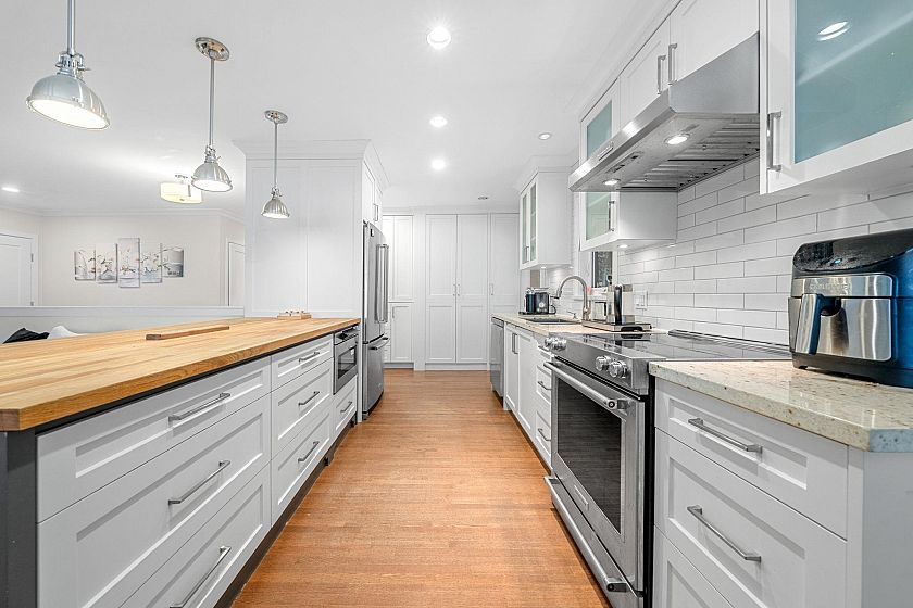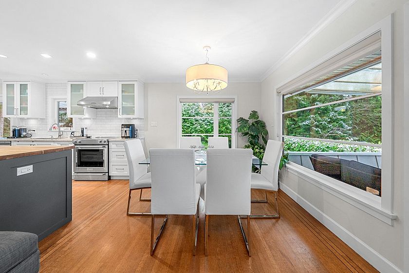Desirable Delbrook home with LARGE suite! Completely transformed with meticulous attention to detail, this luxury residence offers unparalleled privacy and flexibility. The upper level features a bright open-concept layout with 3 beds and 2 baths, including heated marble floors, a cozy fireplace, and a large covered deck perfect for year-round entertaining. The fully finished lower level is an ideal space for a suite, extended family, or guests, featuring 2 beds, a spa-inspired bath, a large office, 2 bedroom (convertible to a 6th bed), plus a full kitchen, living area, fireplace, and private laundry. Large windows throughout frame serene views of the private yard and lush ravine. This home is just moments from the Delbrook Community Recreation Centre, Edgemont Village, and Mosquito Creek.