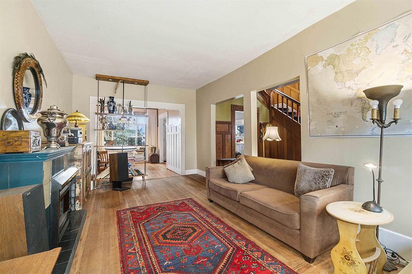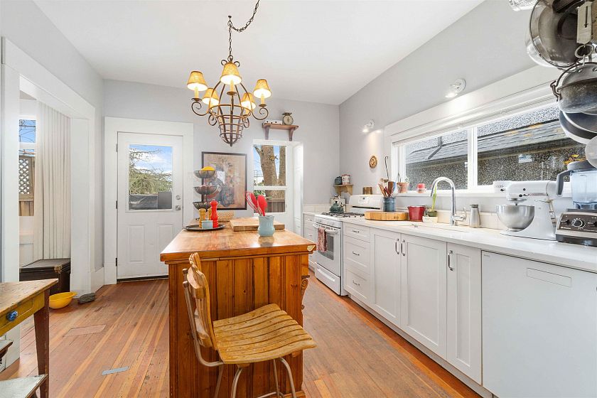 Charming 3-level character home on a quiet tree-lined street! This 2 bed, 1 bath residence offers approx 1,750 sq ft and is rich with period detail including Douglas fir floors, classic wainscoting, and large windows bringing in abundant natural light. Renovated kitchen features Boos butcher block pine island, Franke farmhouse sink, custom cabinetry, gas stove, quartz counters, Jenn-Air fridge, Asko DW & 2 skylights. Cozy living room with gas f/p. Double-glazed south windows with UV protection. Bathroom with classic cast iron tub. Basement, currently Flex Space, roughed-in for kitchen & bath—great suite potential. Cedar shingles front & back plus a 22 x 16 cedar entertainment deck. Close to Tecumseh Elem, Jones Park, restaurants, shops & amenities.