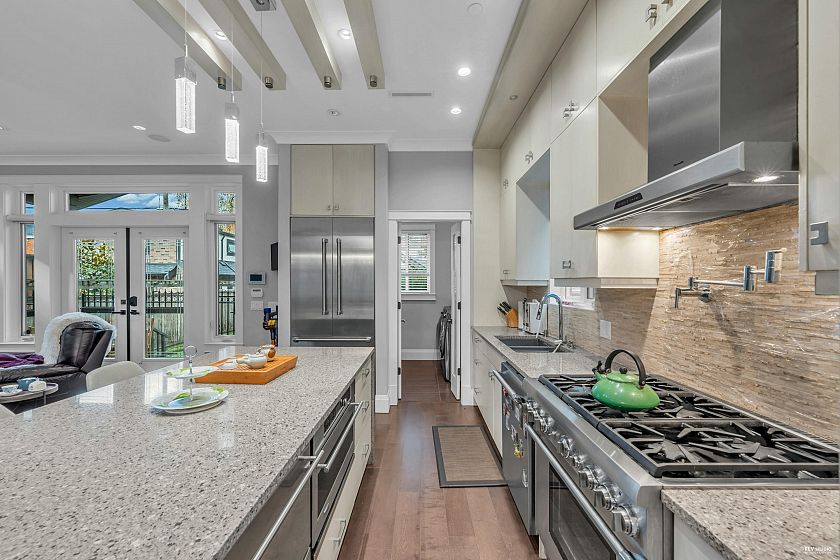 Prestigious point Grey, 4 beds and 5 baths included a 1 bedroom legal suite. Beautiful West Vancouver design and finishings inspired by Gardner homes and built by Sheldon homes. Features included in this masterpiece are: HRV, A/C, radiant heat, surround sound spker system, electric car ready garage, high end chefs kitchen powered by Monogram & Thermadore and an equisite solid arch wood door entry. Energy efficient, Energuide rating of 78 by Van. City. In sought after Queen Elizabeth Elementary & 2-blocks away from Lord Byng secondary.