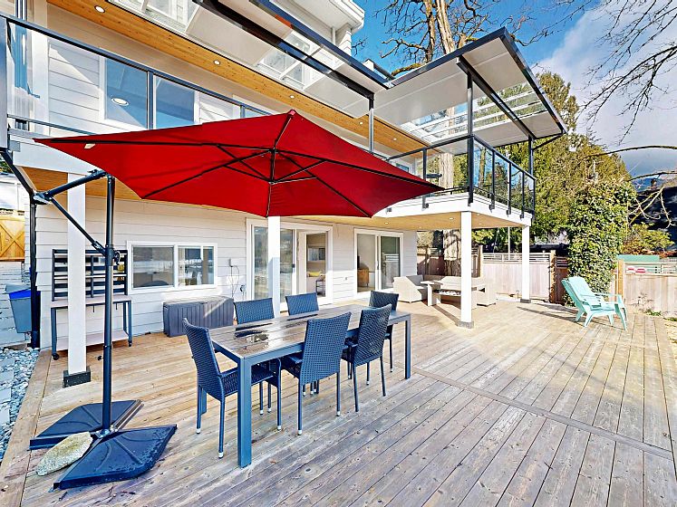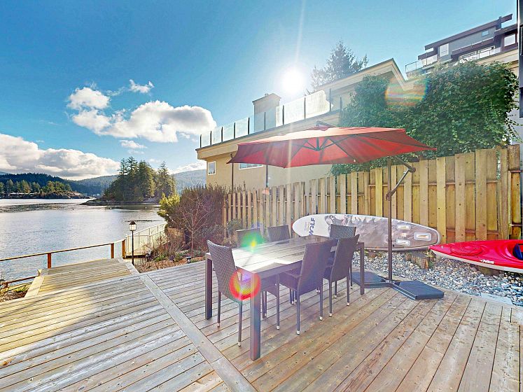 Newly renovated contemporary waterfront residence in Deep Cove offers a rare blend of modern luxury and West Coast natural beauty . Inside, the open-concept layout is flooded with natural light, highlighting high-end finishes. The chef-inspired kitchen features premium S/S appliances, sleek cabinetry, and an oversized island. With over 3,000sq ft it offers spacious living and dining areas flow effortlessly onto sun-drenched terraces, great for hosting or relaxing against a backdrop of the waterfront view. This home offers 5 generously sized bedrooms, 4 full bathroom. This prime waterfront property provides direct access to the shoreline and to your private shared dock to park your own boat. The ultimate West Coast lifestyle—kayaking, paddleboarding from your own backyard. Must VIEW!