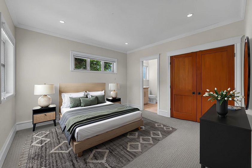 Nestled on the coveted Golden Mile in the prestigious BPs, this timeless Craftsman-style residence offers stunning views of Vancouver Harbour & Mt. Baker in a highly sought-after family neighbourhood close to top schools. Ideal for growing families, the home features a grand double-height vaulted foyer, expansive chef’s kitchen w/ separate wok kitchen, generous entertaining spaces & formal living & dining w/ rich white oak flooring & an oversized fireplace. A natural wine cellar leads to an extensive crawl space spanning the full footprint of the home for exceptional storage. Upstairs offers a rare 5 expansive beds, each w/ its own ensuite, many w/ picturesque views. Bonus separate coach house/in-law suite on the upper garden level also captures beautiful outlooks & a large 3 car garage.