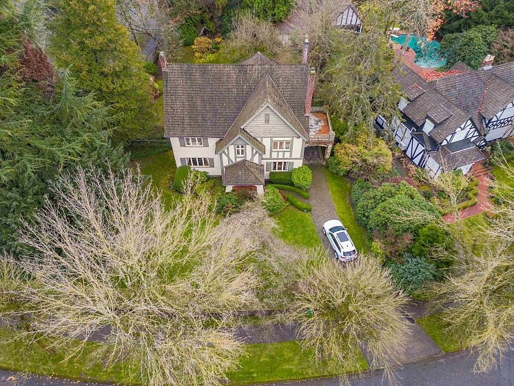Stately manor-inspired Shaughnessy estate on 19,461sf double-fronting corner lot on Marguerite @ Somerset Cr. Boasting 5,504sf of refined living space, offering tremendous renovation potential while maintaining its timeless architectural integrity. The elegant main level features expansive principal rooms designed for sophisticated entertaining, while five bedrooms grace the upstairs, including a luxurious primary with ensuite. The lower level accommodates recreation & laundry facilities. Step outside to discover a spectacular stone deck overlooking the tranquil, tree-enclosed garden—a private sanctuary in the city. This estate-like setting provides unparalleled serenity within Vancouver's most exclusive enclave. Close to top schools, Crofton, St. George’s, PG Sec & UBC. |Multiplex allowed