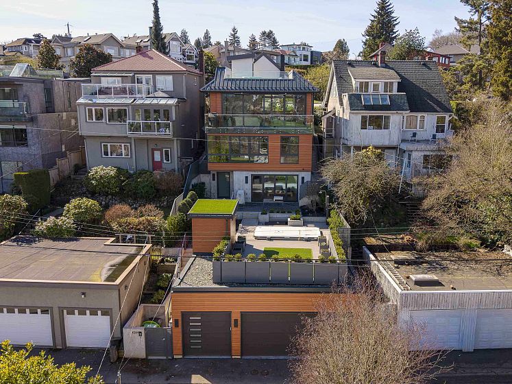 One of a kind custom built VIEW home by Simplicity Homes & architecturally designed by B2Squared. No expenses spared by current owner to build their dream home. Located on pristine Quesnel Drive this 3,200 square foot smart home has every feature imaginable including: automated blinds, Savant home automation, custom millwork throughout, radiant in floor heating, and much more. Incredible gourmet kitchen with top end appliances. Stunning roof top deck ideal for entertaining. Arctic Spa resistance pool & swim spa with automatic cover. Large 1 bedroom guest suite. To top it all off… two elevators so no stairs to climb from garage to roof top deck. Truly an exceptional home that cannot be replaced. Call today.