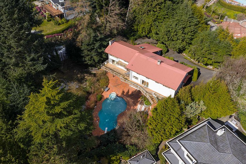 Development potential in one of the British Properties’ most prestigious enclaves—860 Fairmile sits on a rare 0.54-acre estate offering the opportunity to build a custom dream home or preserve a timeless residence. A recent survey and design concepts by Brad Lamoreaux Architects allow for a residence of up to 8,551 sq.ft. plus an additional coach house. The existing 5,800 sq.ft. home features 4 bedrooms, 6 bathrooms, expansive living spaces, and a private, sun-filled backyard with pool—ideal for both entertaining and everyday living. The primary suite enjoys exceptional privacy with tranquil outlooks to the gardens, pool, and ocean beyond. Ideal to renovate, hold, or reimagine, this property offers exceptional flexibility for end-users, investors, or builders in a coveted location.