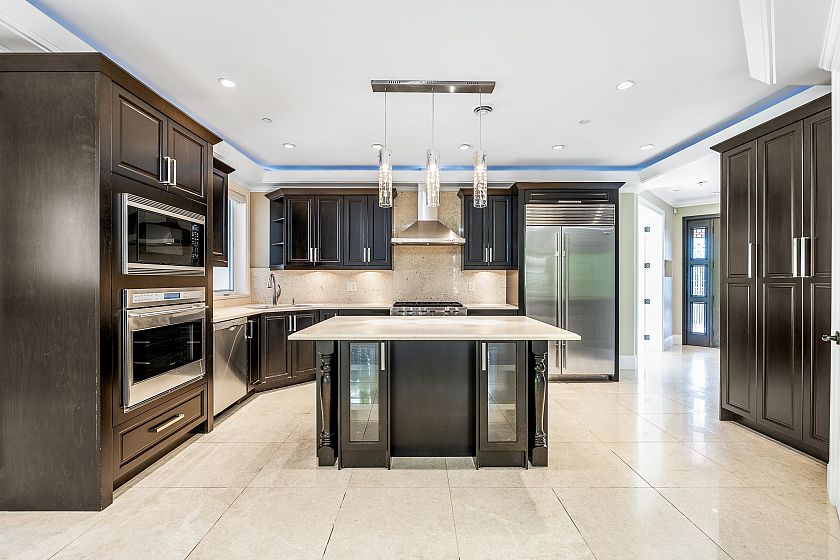 Nestled at the end of a quiet cul-de-sac, this executive residence offers over 6,100 sq. ft. of luxurious living across three levels. Designed with 8 bedrooms and 8 bathrooms, it features a grand double-height foyer, entertainment-sized living room, and a gourmet kitchen with granite counters, premium appliances, and a wok kitchen. The main level includes a guest ensuite, while upstairs offers four bedrooms including a spa-inspired primary suite with walk-in closet. The lower level, with separate entrance, provides 3 bedrooms, 3 bathrooms, a full kitchen, and recreation room—ideal for multi-generational living. Situated on a 13,800 sq. ft. lot with private terraces and a triple-car garage, this home is walking distance to top schools and shopping.