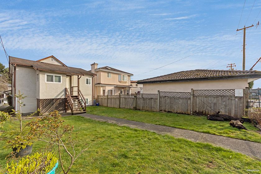 Fantastic 33 x 124.5 ft flat lot, centrally located in a great family neighborhood! Solid house with full height ceilings in the basement and a separate entrance, good size bedrooms (2 beds up with 1.5 bath and 2 bed + 1 bath down), a large spacious family room, updated windows and a clean large backyard with no trees. House is very livable and has been updated over the years. Great lot for a future build. Beautiful quiet street filled with cherry blossoms in the spring. Conveniently located walking distance to schools, parks, transit, with plenty of restaurants and shopping along Victoria Drive.