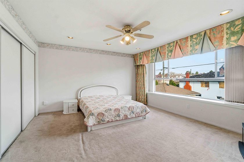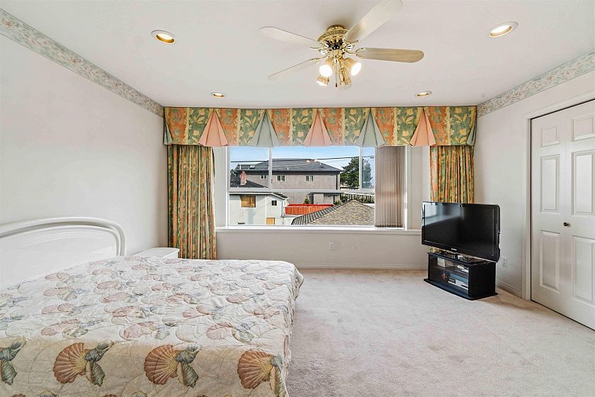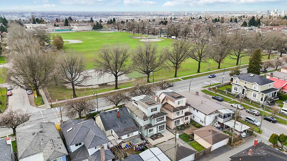 Charming traditional Vancouver home across from the park! Proudly maintained by the same family since 1995, this 3-level home offers 4 bedrooms and 4 bathrooms in clean, mostly original condition-perfect for your renovation ideas! The main floor features bright living and dining areas, a spacious kitchen, and family room opening to the yard with a detached 2-car garage and lane access. Upstairs offers 3 bedrooms, including a large primary with ensuite. The top floor provides a flexible space or 4th bedroom with access to a sunny private rooftop deck. Radiant in-floor heating, over-height ceilings, crawlspace storage, and mature landscaping. Steps to parks, David Thompson Secondary, shops, transit, and Victoria Drive amenities! OPEN HOUSE Sunday 230-430pm