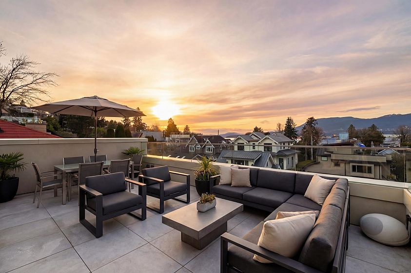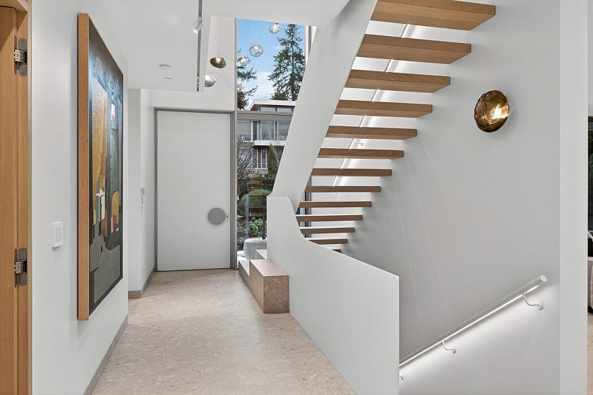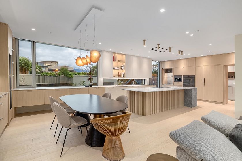 A newly completed, nearly 4000 sqft architectural modern residence located N of 4th Ave & just steps from Locarno. Designed by Lamoureux Architects w/interiors by Studio AKC, this home offers a dramatic double-height reception featuring a statement Bocci chandelier of hand-blown glass, clean architectural lines, warm materials, & sculptural metal staircase leading to a rooftop terrace w/views of N. Shore mtns & English Bay. Chef’s kitchen incl. sculptural island, Miele appliances, hidden pantry, & 2nd wet kitchen. Outdoor living incl. sunny front Zen garden & private large rear entertaining area w/outdoor kitchen & dining. Rear entry mudrm w/storage & dog wash. 4-beds, incl. primary suite w/spa-inspired ensuite & oversized walk-in-closet. Rec lvl w/bar, glass wine room & home theatre.