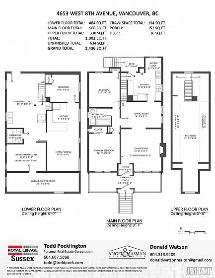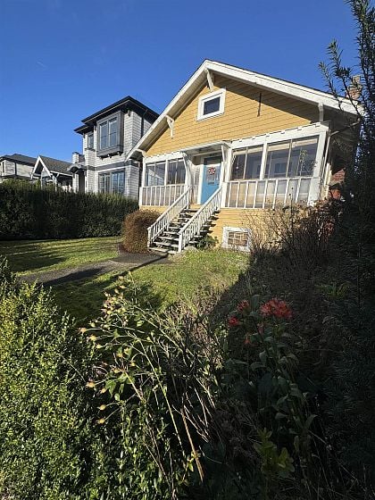 Original Point Grey home in a premier location with a bright, private garden and paved lane access. Bring Design ideas. Main level features 9ft ceilings, hardwood floors, spacious living room, kitchen, and two bedrooms. Upstairs offers a large open recreation room (7ft at peak)great rec, office, or studio use. Basement Features 1 bedrm area w/partial kitchen (7ft) and separate entrance, perfect for a self-contained suite. Home is solid, bring design ideas. Situated on a very desirable, developable lot with potential for a new duplex or estate with lane home. Walking distance to 10th Avenue Village shops, UBC endowment lands, Jericho Beach, and top schools, including Queen Mary Elementary, Lord Byng Secondary, West Point Grey Academy, & St. George’s School. Easy access to UBC.