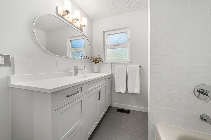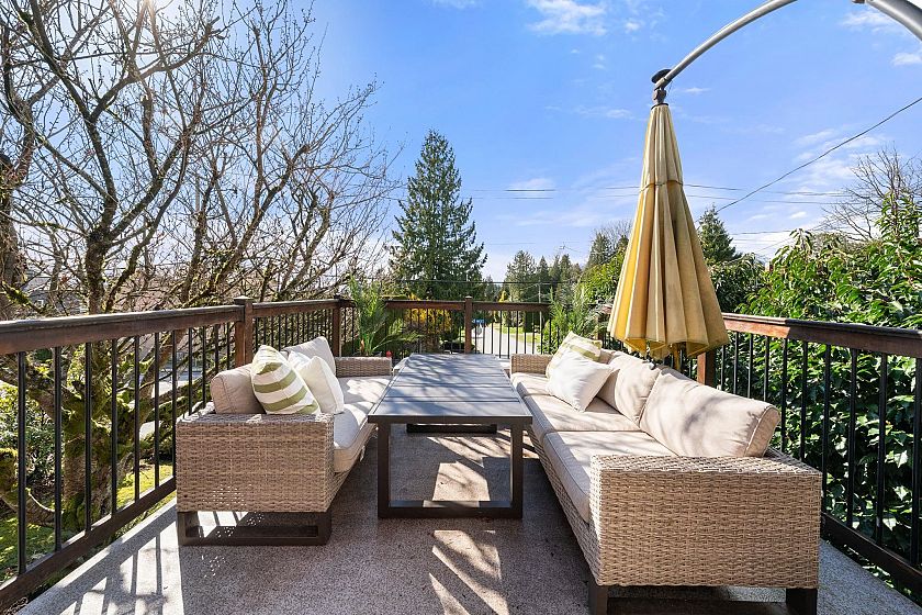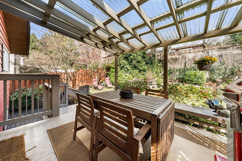 Set on a sun-drenched, west-facing lot, this beautifully updated 2-level family home offers nearly 2,500 sq.ft of versatile living, framed by lush, mature gardens. The upper level features a classic 3 bed/2 full bath layout w/ new wide-plank flooring, fresh paint, and is anchored by a striking West Coast–inspired fireplace. The kitchen opens to a covered patio for seamless indoor-outdoor living, perfect for summer entertaining. Lower level offers a bright 2 bed & den above-ground garden suite, w/ separate entry & laundry, ideal for multi-generational living or revenue potential. Thoughtfully maintained: updates to roof, windows & exterior paint. Close to Edgemont Village, New Rec Center & Lonsdale amenities. Walk to schools! OPEN Sun Mar 29th 1–2:30pm, Tues Mar 31st 10am–12pm or by appt.