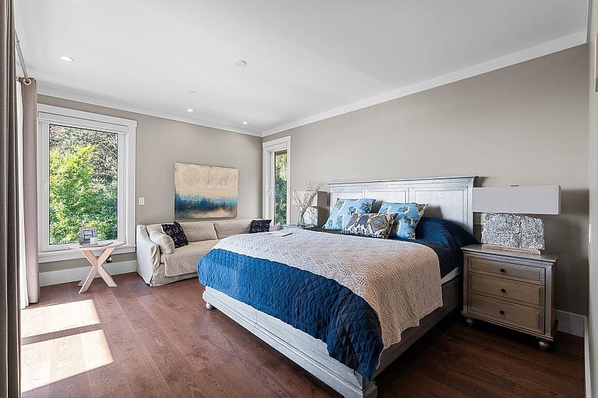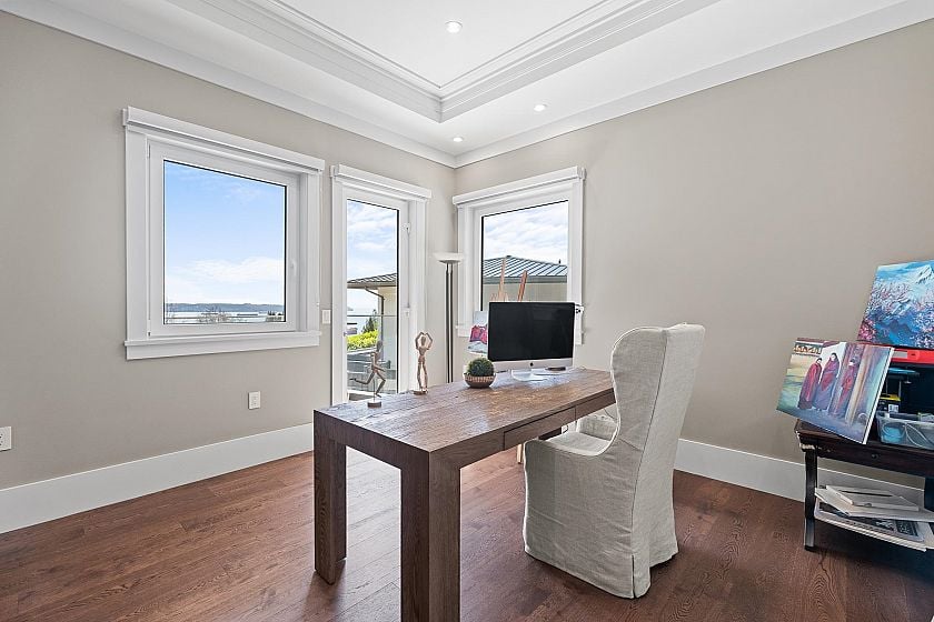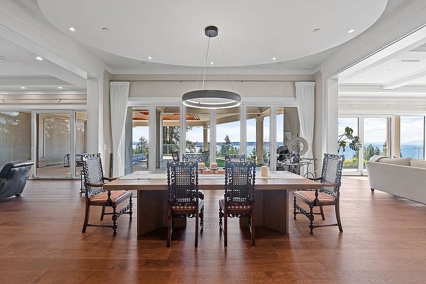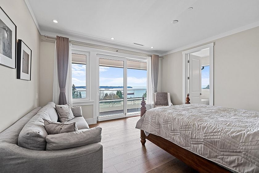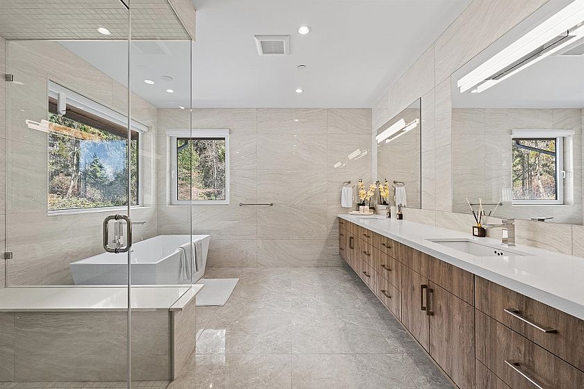 Spectacular custom-built residence designed by Paul Butler, with stunning views, deluxe Miele appliances, fry kitchen and exceptional quality throughout. Offering 6 beds, 7 baths and 7,372 sq. ft. of living space on 3 levels. This bright modern home features all above-ground living spaces, maximizing natural light and views from every level. Expansive decks on both the main and upper floors create seamless indoor-outdoor living, perfect for entertaining or relaxing while enjoying the expansive views. The 3 car garage features an overheight ceiling that could accommodate vehicle lifts to fit up to 6 cars. This combined with a large level autocourt makes this home ideal for car enthusiasts. Conveniently located just 5 minutes from sought-after West Bay Elementary School.