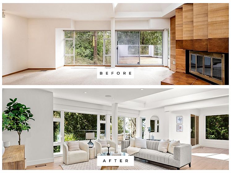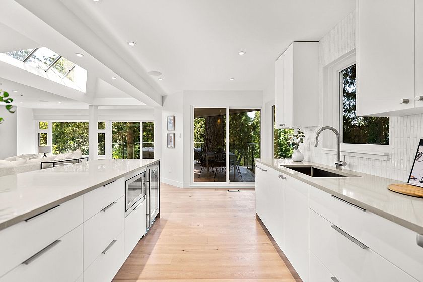 HUGE PRICE IMPROVEMENT on this fully renovated modern 4-bedroom, 3-bathroom home in West Vancouver’s Caulfeild. EXTENSIVE UPGRADES include new plumbing, electrical, flooring, windows, lighting, built-in speakers, upgraded insulation, a redesigned layout, and an added structural beam. Floor-to-ceiling windows and vaulted skylights fill the home with natural light. The chef’s kitchen features a waterfall island, integrated appliances, wine fridge, and refined finishes. The spa-inspired primary retreat completes this turnkey offering. Set among natural rock formations with treetop views, just steps to Lighthouse Park. OPEN HOUSE SUNDAY, APRIL 26TH 2-4PM.