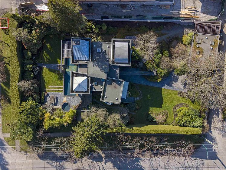 Unbeatable location in Point Grey, north of 4th, this stunning contemporary estate is a true architectural gem—unlike anything else on the market. Set on a 17,770 sqft corner lot, offering plenty of privacy & natural light. Custom built by current owners, the 5,372 sq ft residence spans 3 levels & showcases views of the Burrard Inlet & North Shore mountains.Exceptional stonework & striking design define the home, blending bold architecture with refined living.Featuring 5 beds & 6.5 baths,the layout offers both scale & sophistication.The indoor-outdoor connection is highlighted by a spectacular pool extending from the living space,complete with a built-in hot tub & extensive landscaping—creating a resort-like setting that is one of a kind. Across from Westmount Park & steps to Spanish Banks
