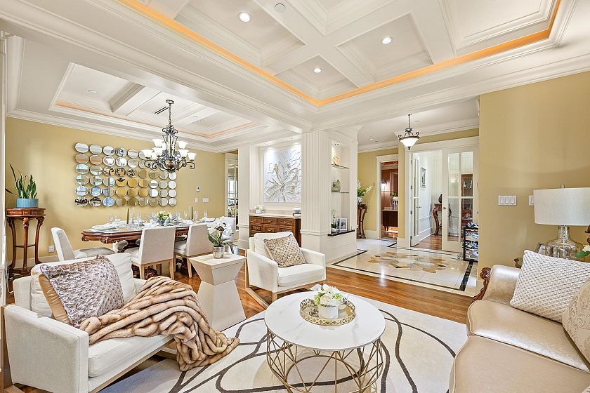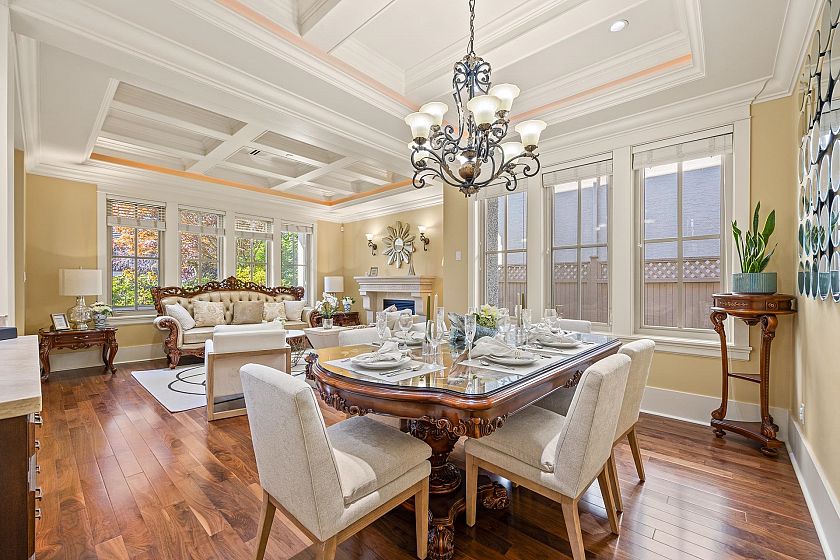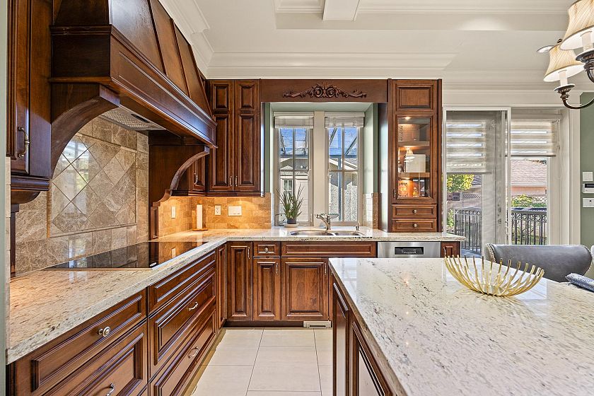 Elegant Custom in Prestigious South Granville luxurious four-level custom-built home on the high side of a quiet, tree-lined street. This elegant residence offers 6 bedrooms and 7 baths. Features include a grand foyer with soaring ceilings, walnut hardwood floors, extensive granite and marble finishes, a gourmet kitchen with Sub-Zero and Wolf appliances, and custom maple cabinetry. Enjoy a deluxe home theatre, wet bar,A/C,HRV, and surround sound system. The secure, beautifully landscaped yard with a private gate provides the perfect space for living and entertaining. Close to Maple Grove Elementary and Magee Secondary, this is a rare opportunity to own a refined home in Vancouver’s most prestigious neighborhood!