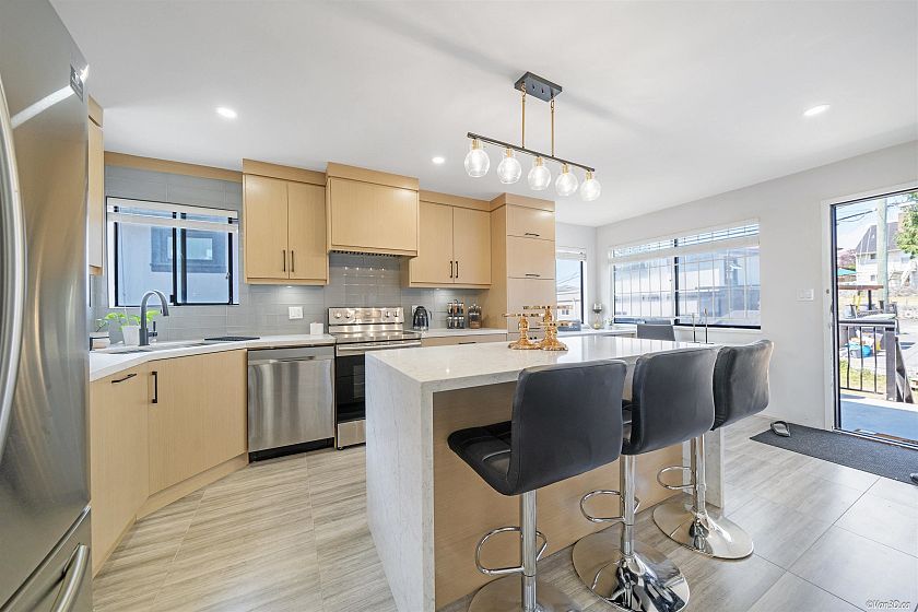 Luxury inspired theme, this 6 bedroom Vancouver special has been completely renovated from top to bottom. With all new flooring throughout, this home has been tastefully updated with high quality materials. New tiles, new vinyl plank flooring, new window coverings, new countertops, new plumbing fixtures, new painting, new roof, the list goes on! Upstairs kitchen has been updated with high end cabinets and stain proof quartz countertops with waterfall feature on the island. Riobel spa shower in the main washroom.
