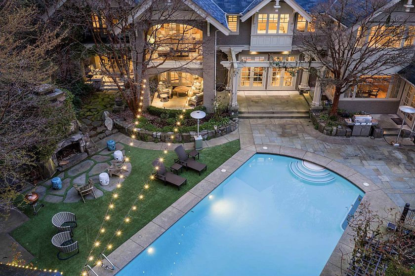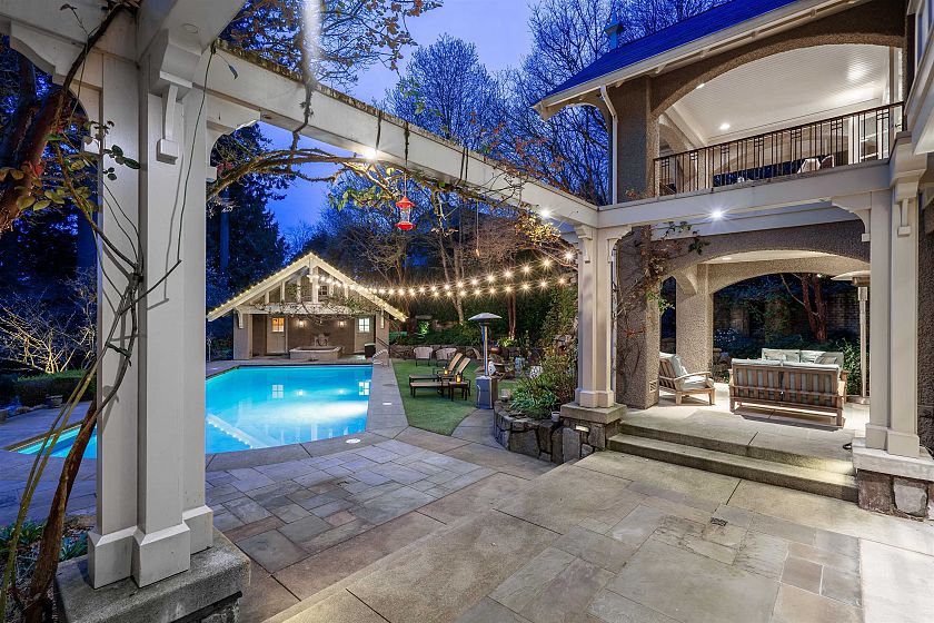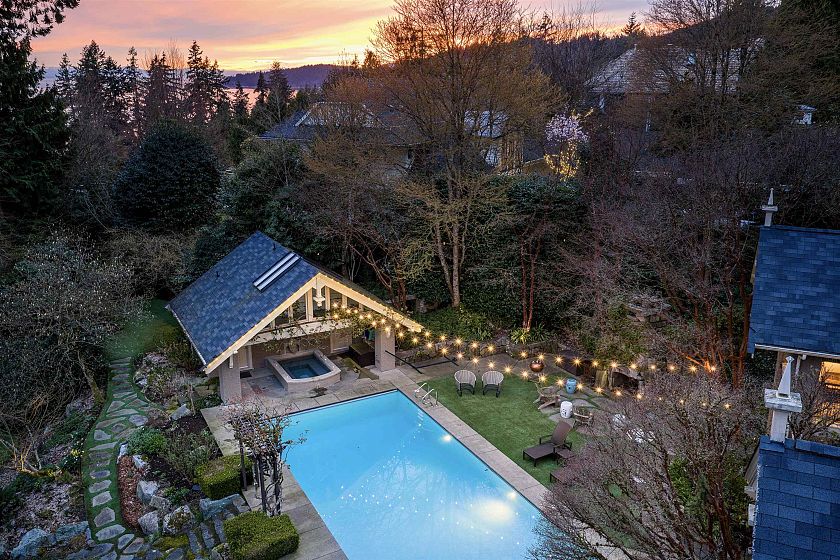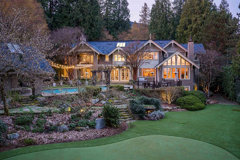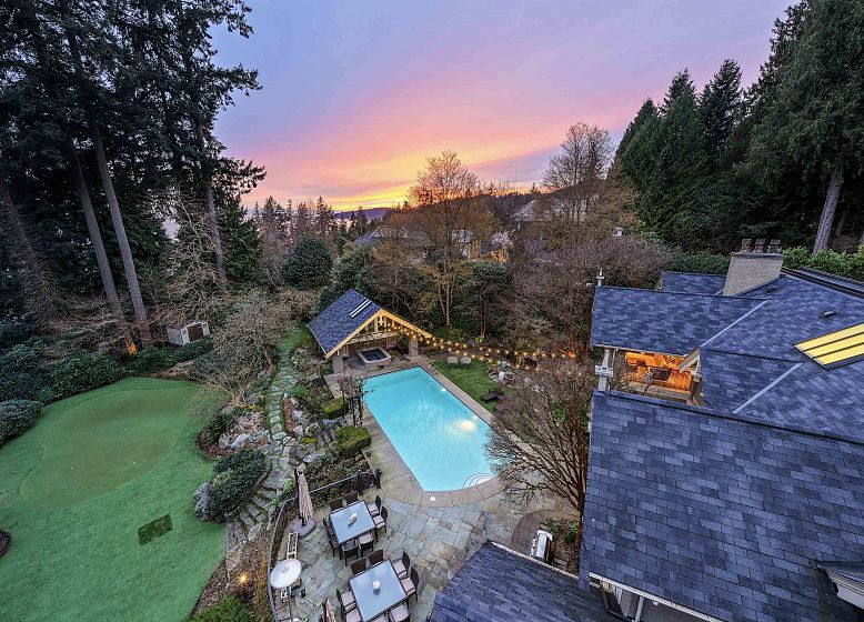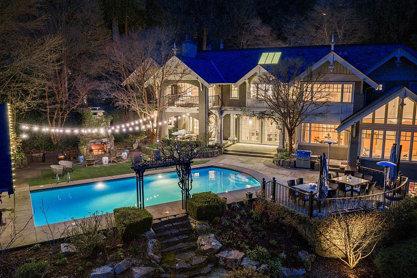 Discover this magnificent Lamoureux Architect Designed and Bradner Built luxury residence situated on a private .816-acres estate property in West Vancouver's most prestigious Altamont neighbourhood in the West Bay Catchment. Experience this over 10,000 SQ FT, 7 bedroom, 10 bathroom home that blends timeless elegance with modern comfort together with an impeccable choice of quality materials and designer finishing's. Enjoy an open-concept layout with seamless indoor-outdoor flow and relax by the sun-drenched swimming pool, soak in the hot tub, or entertain by the wood-burning fireplace. Features include: a gourmet chef kitchen with high-end appliances, media room, rec. room, wine room, gym, air cond., and four car garage. This gated park-like estate is beautifully illuminated at nighttime.