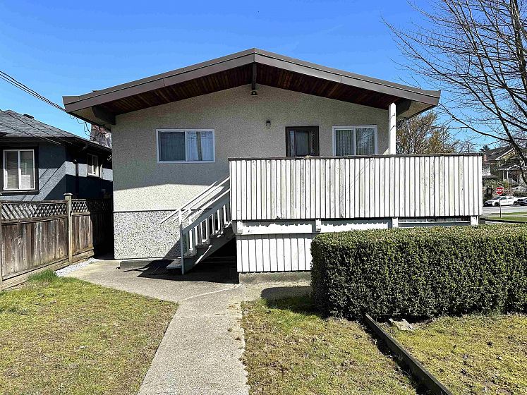 Solid home at a standard corner lot with great development potentials! Located at the northwest corner of Renfrew & 16th Ave., approximately 7 mins walk from Renfrew Station, this property is designated within the Rapid Transit Area A of the Rupert and Renfrew Station Area Plan as approved by City Council, suitable for high-rise development. This livable home has been well maintained by the same owner for four decades. Main level offers two well sized bedrooms, living room with a wood-burning fireplace, and a bright kitchen with eating area. Back lane access to single garage & a private green yard. Separate entrance to the basement one-bedroom suite with kitchen, washer & also a wood burning fireplace. Buyer to do own diligence on development guidelines.