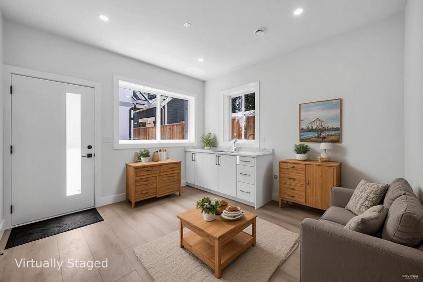 This beautifully designed, brand-new residence offers modern living in one of Victoria's most desirable neighborhoods. Backing directly onto Jones Park, this home provides a perfect blend of comfort, style, and convenience. The main house features 3 spacious bedrooms upstairs, Open-concept kitchen and living area with 9’ ceilings on both levels, AC and radiant floor heating throughout, a large private balcony with park views, a legal 2-bedroom suite, plus potential for an additional 1-bedroom suite – ideal for rental income or extended family. The laneway house includes 3 bedrooms with 9’ ceilings throughout, AC &1-car carport. Located just minutes from shops, restaurants, transit, and schools, this property is perfect for families with helpers. Showings by appointment with 48 hour notice.